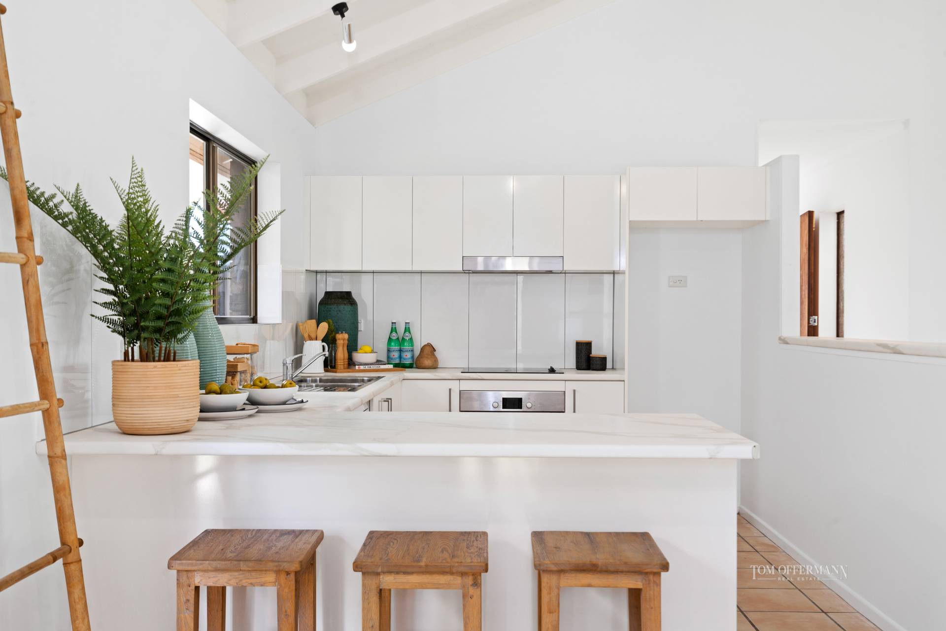 Commensurate in size is the kitchen with marble-look laminate-topped cabinetry and semi-island breakfast bar, large white tiles as the splashback and premium appliances. Along the hallway are three bedrooms with built-in robes, bathroom, separate toilet and a laundry. "Being so close to Hastings Street, this property is currently one of the rarest properties available and has all the hallmarks for the creation of a spectacular showpiece," extols Tom Offermann Real Estate agent Nic Hunter "the location on tightly-held Noosa Sound is second-to-none, and there is little doubt a lucky buyer will seize the moment and transform it into a stunning residence.