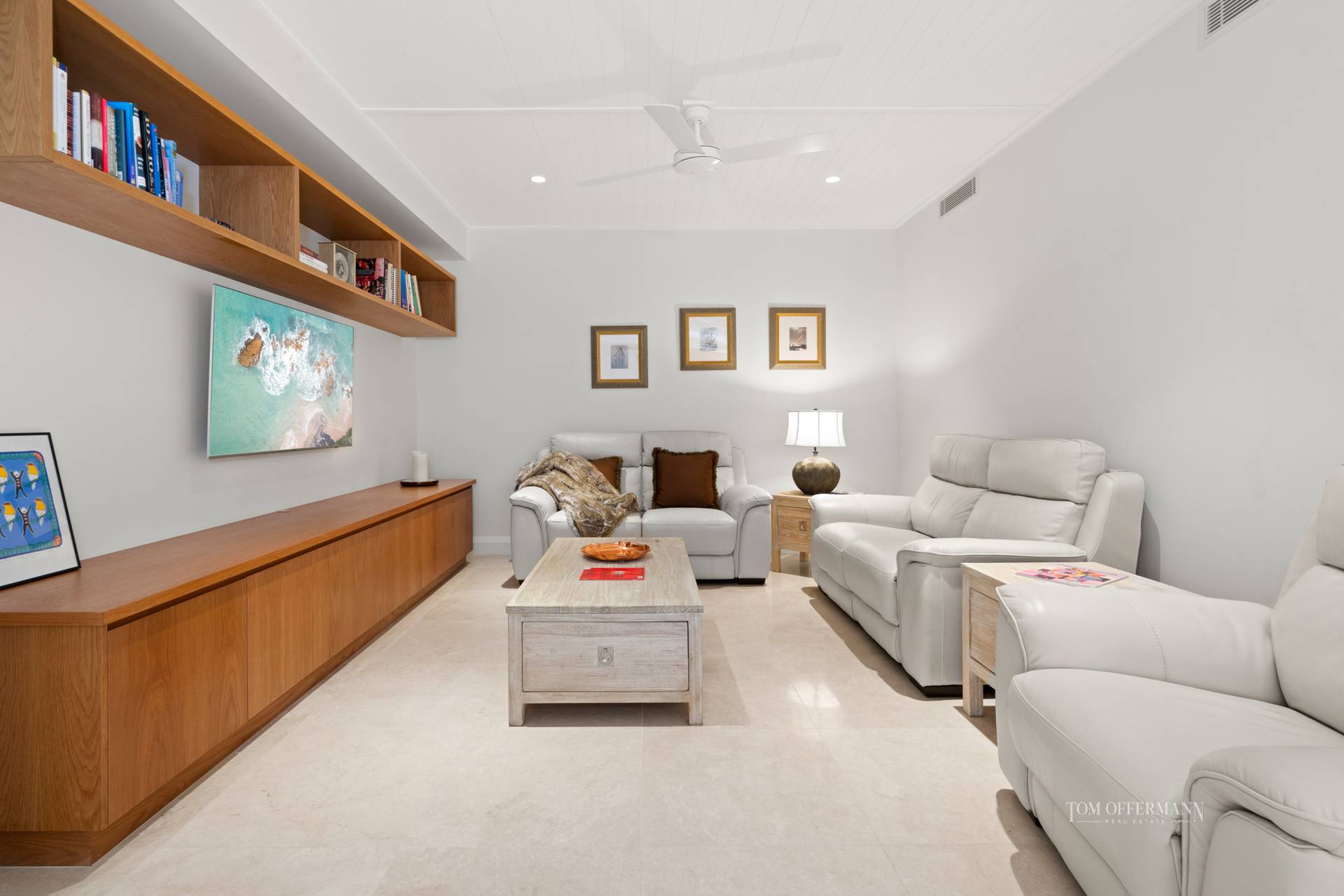 • About: lift access; marble-tiled floors & bathroom walls; VJ-profile doors; office/media room/library w custom cabinetry; VJ ceilings lofty incl 3m in most areas; fully ducted aircon/fans; ducted vacuum system; fully automated lighting/block out blinds/window treatments; open plan living & dining spaces + lounge/media space w latest TV & sound system; office/study w custom cabinetry; 3 carpeted bedrooms - master bedroom w ensuite incl bath & walk-in robe; 2 bedrooms w built-in robes, opens to terrace