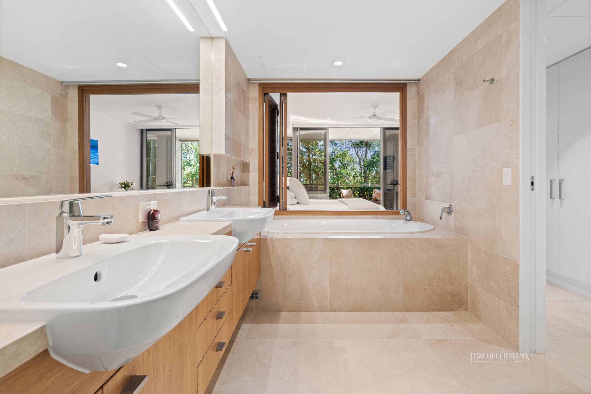 The substantial king master suite accesses the end of the main undercover terrace which has stainless steel privacy shutters, the ensuite has a bath and separate toilet and there is a long walk-in robe.