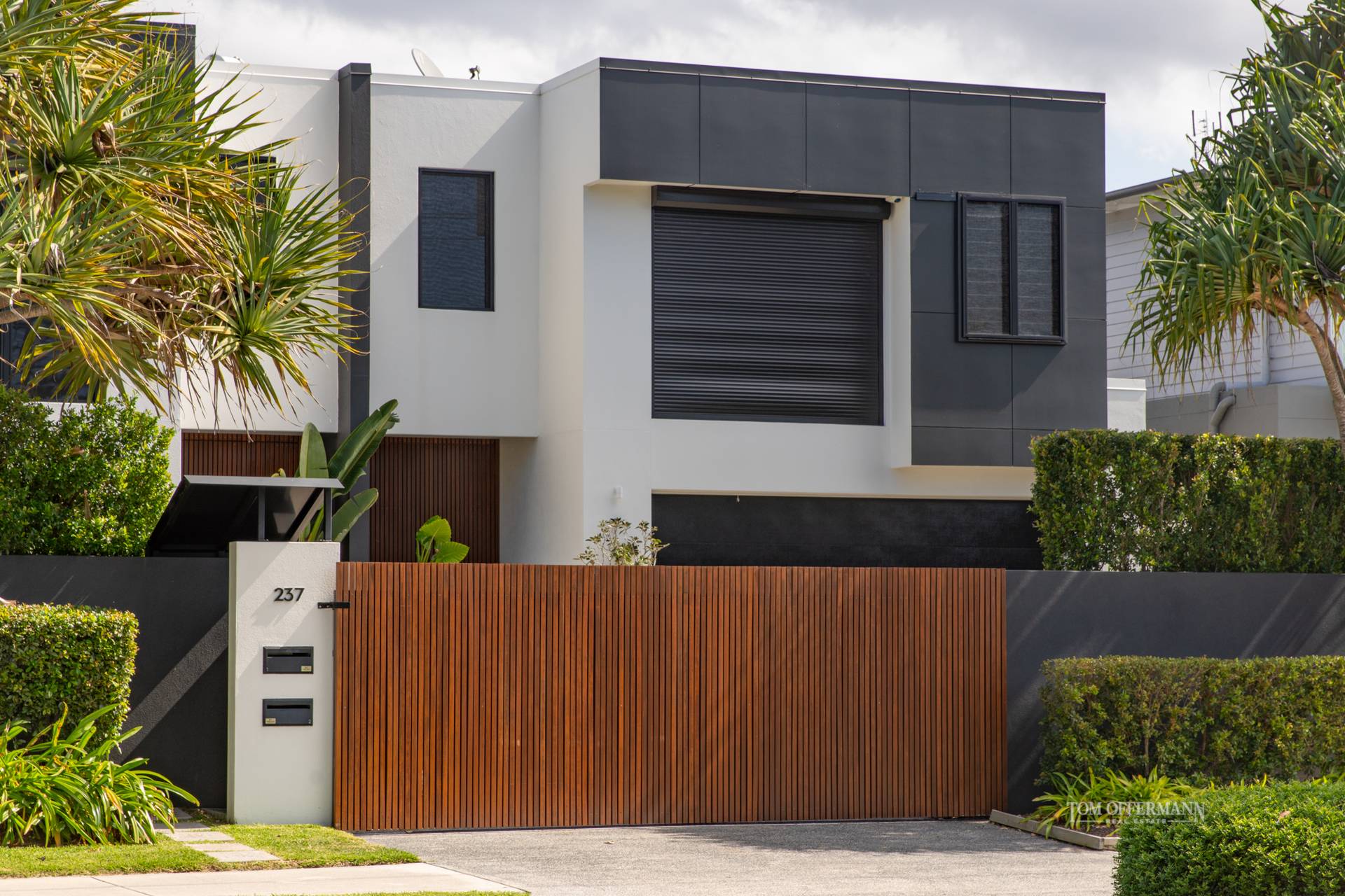 Admire the façade, architect Peter Hull's eye-catching design, timber security gate, garden-fringed walkway to the front entry, and inside a wonderful surprise.