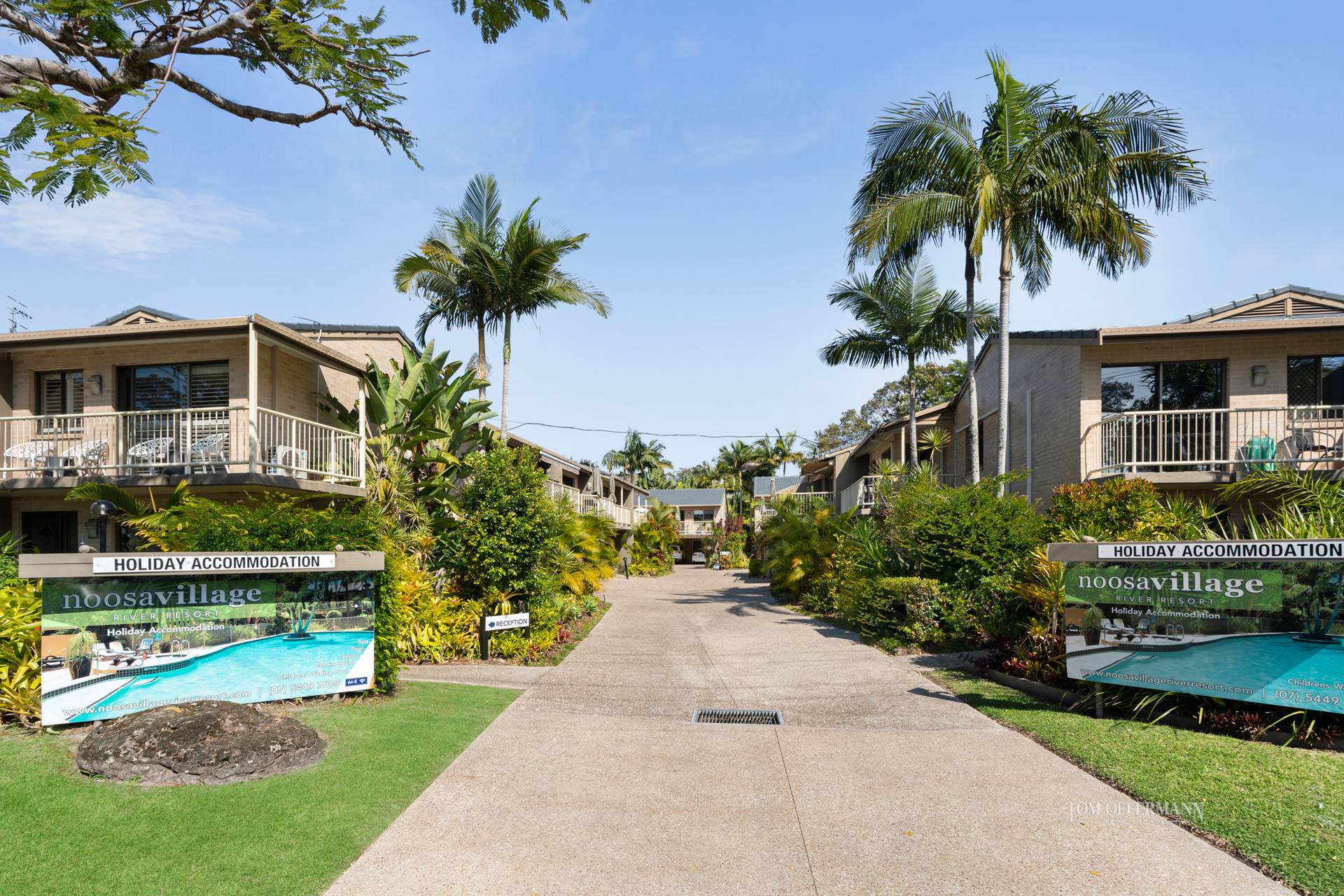The Noosa Village River Retreat boutique complex has tropical gardens with a heated pool, spa and sauna, also a full-size tennis court.