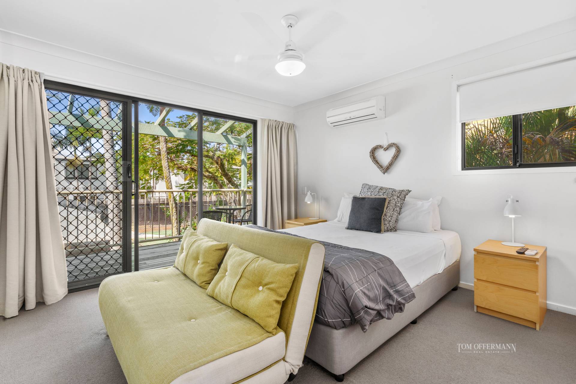 Natural light aplenty invites itself in, thanks to doors on three sides which almost completely open to two totally private undercover terraces plus the large paved courtyard on the north-westerly side with swaying palms, tropical plants, and alfresco furniture for entertaining. Sun and yoga lovers, or those looking for 'me-time' will no doubt choose the south and east-side terraces.