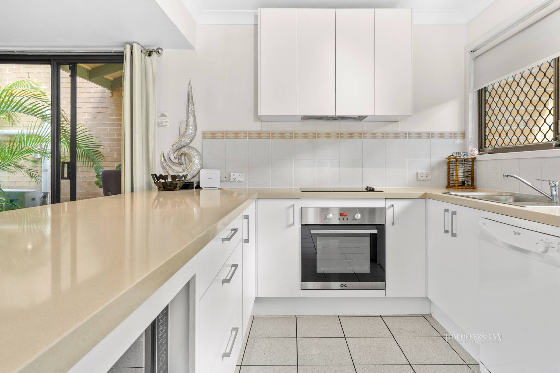 The U-shaped kitchen with stone-topped fresh white 2-pac cabinetry including a semi-island breakfast bar and high-end appliances has every accoutrement for casual dinners or maybe sundowners by the Noosa River foreshore, which is opposite.