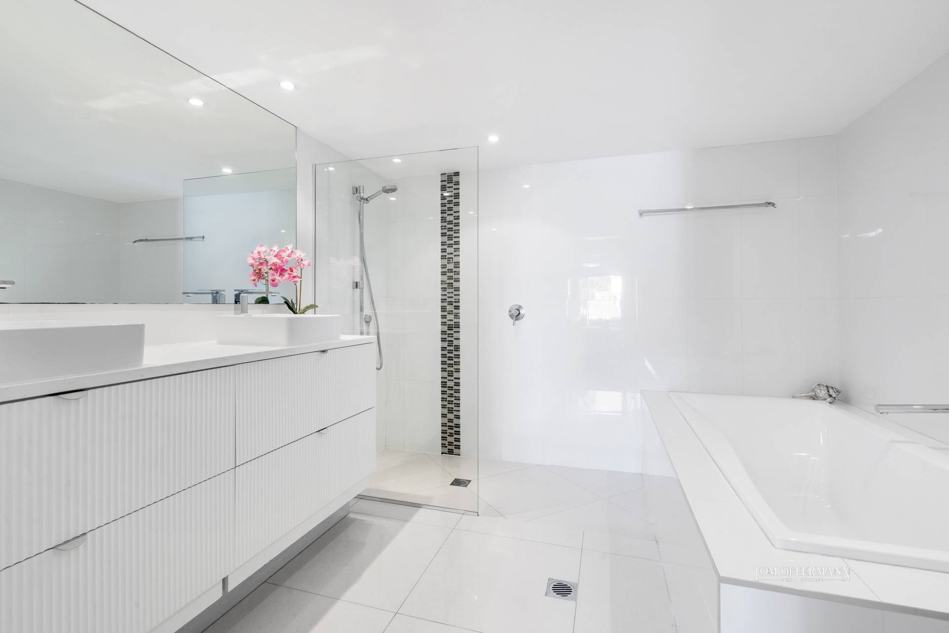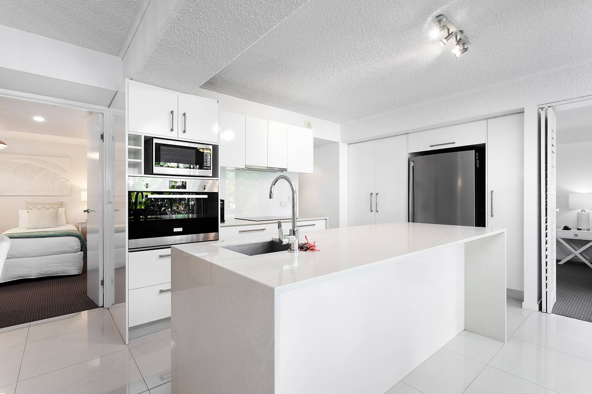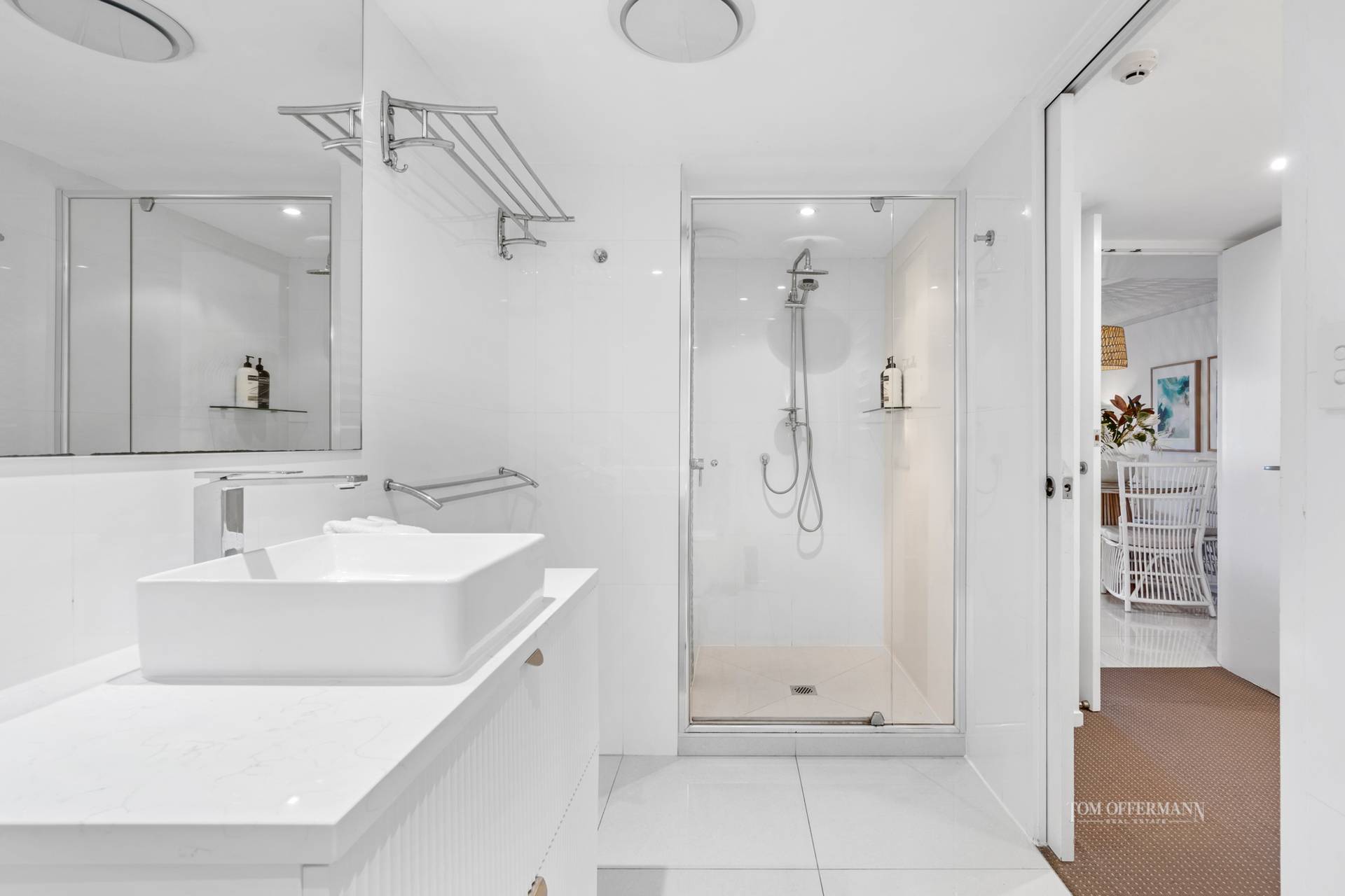 Two bedrooms have king bed ensembles (the second bedroom can be split to two singles if required) with high-end linen. Both have luxurious ensuites, the master has a walk-in robe and doors opening to water views and the terrace.
