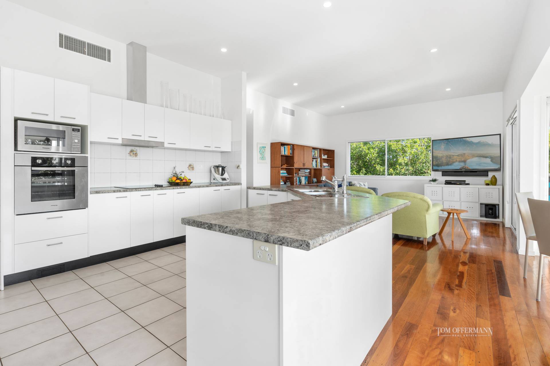 Located on the North Westerly wing you find a extensive and open living space with kitchenette this is ideal media room or perfect living space for teens or this area can be closed off and be income producing. This space has its own entry, ideal if you are looking to run a well managed Airbnb from home or rent this space our permanently.