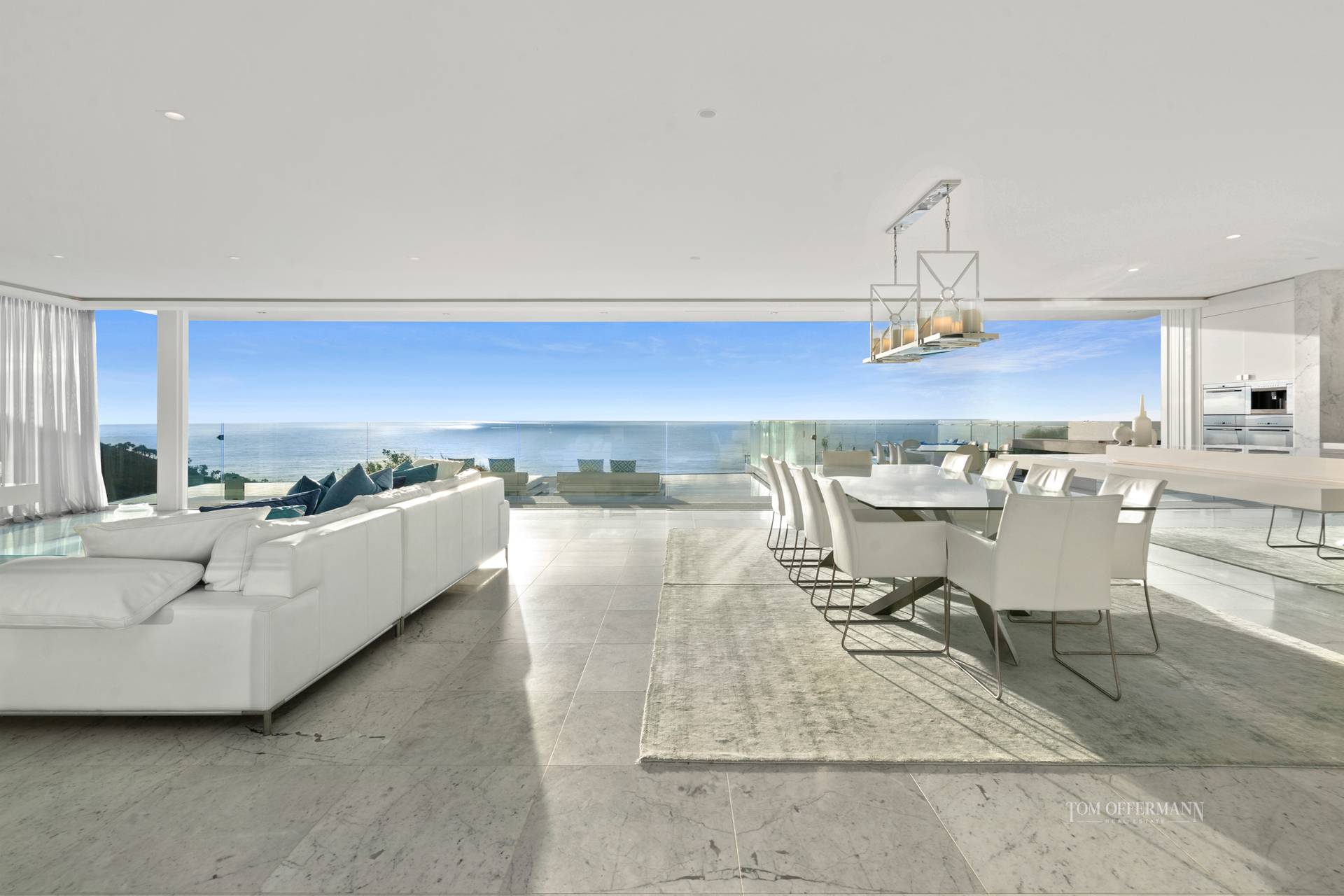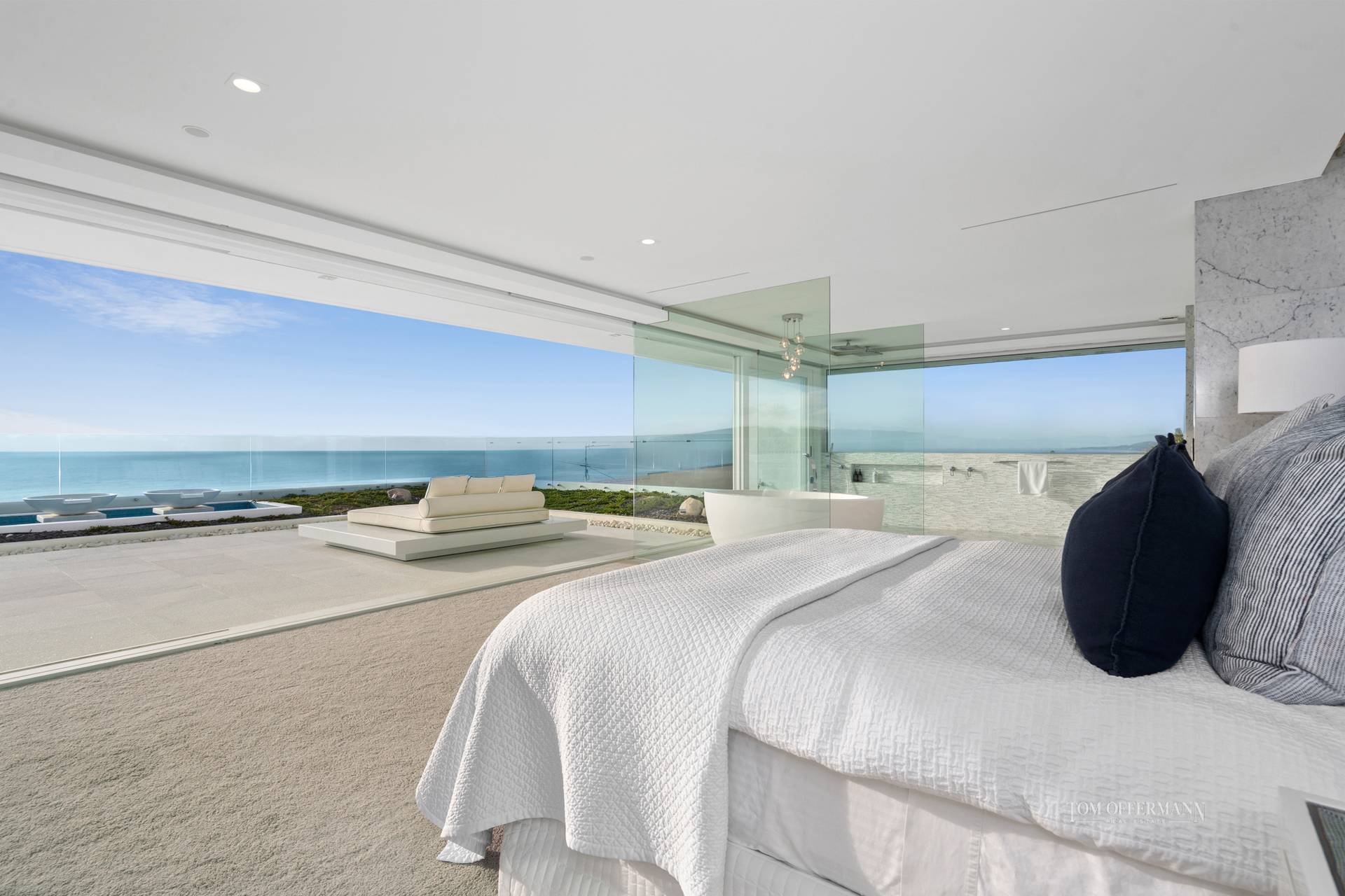 Inspired by nature, specifically a prized sand dune, the inspired residence embraces and advances the idyllic sub-tropical vernacular as well as living la vida luxe with those unsurpassed, never to be interrupted views, even from day beds, which seemingly float on the dazzling viridescent, marble mosaic-tiled infinity pool.