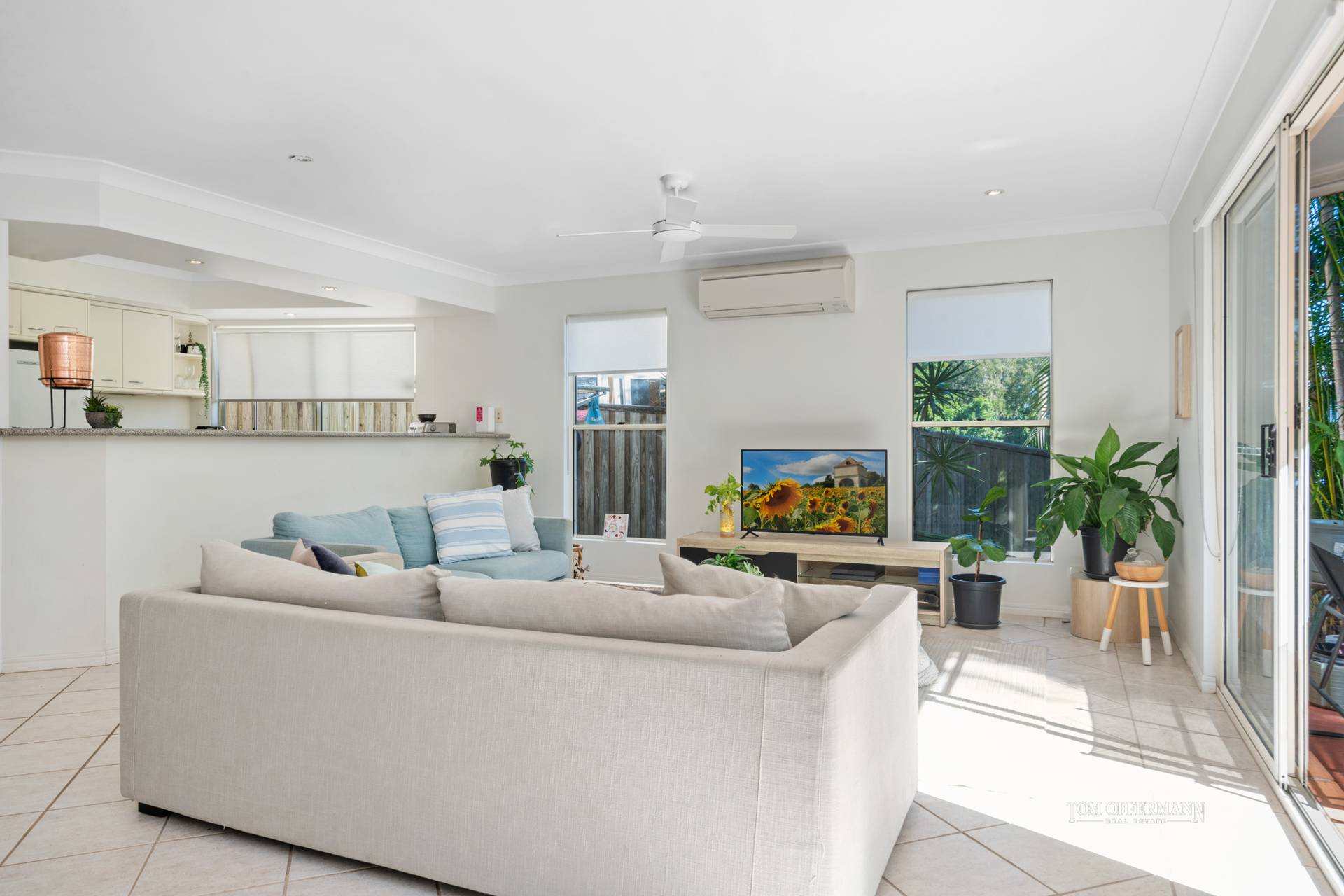 Fusing coastal style and a fresh creamy palette with casual flair, becomes obvious from the moment the door opens into the hallway. Natural light drenches the sandy-hued tiles which stretch the width of the townhome and flow into the generous open-plan living and dining area. Slide away the doors and note how they amplify the indoors-out effect, in a seamless transition to the terracotta-tiled terrace on the north-westerly side. You certainly get the feeling someone is about to pour a cool drink before a long lunch or a sublime sunset.