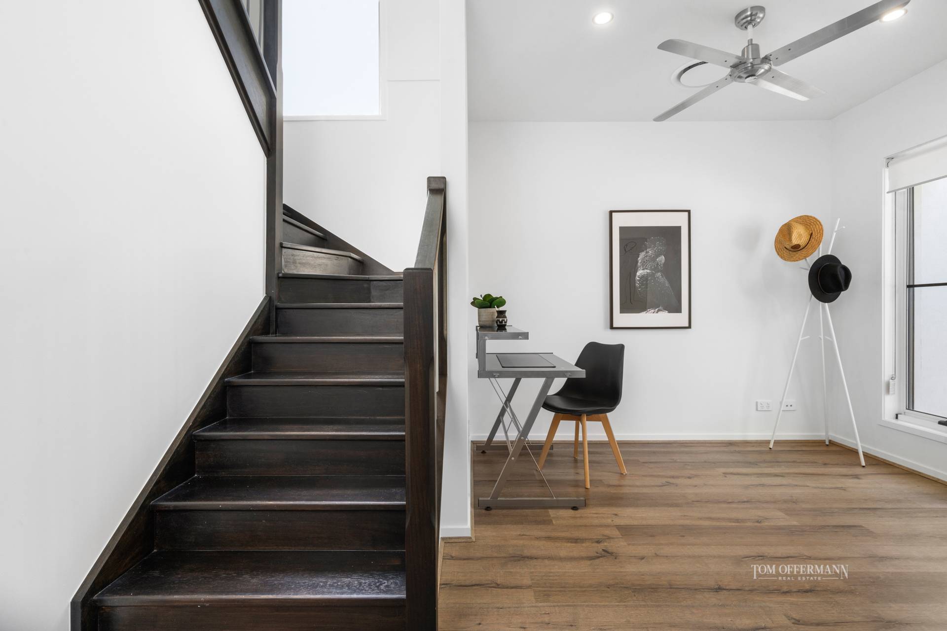 A study, powder room and a laundry with access to a drying area are off the hallway, while upstairs is primarily devoted to slumber.