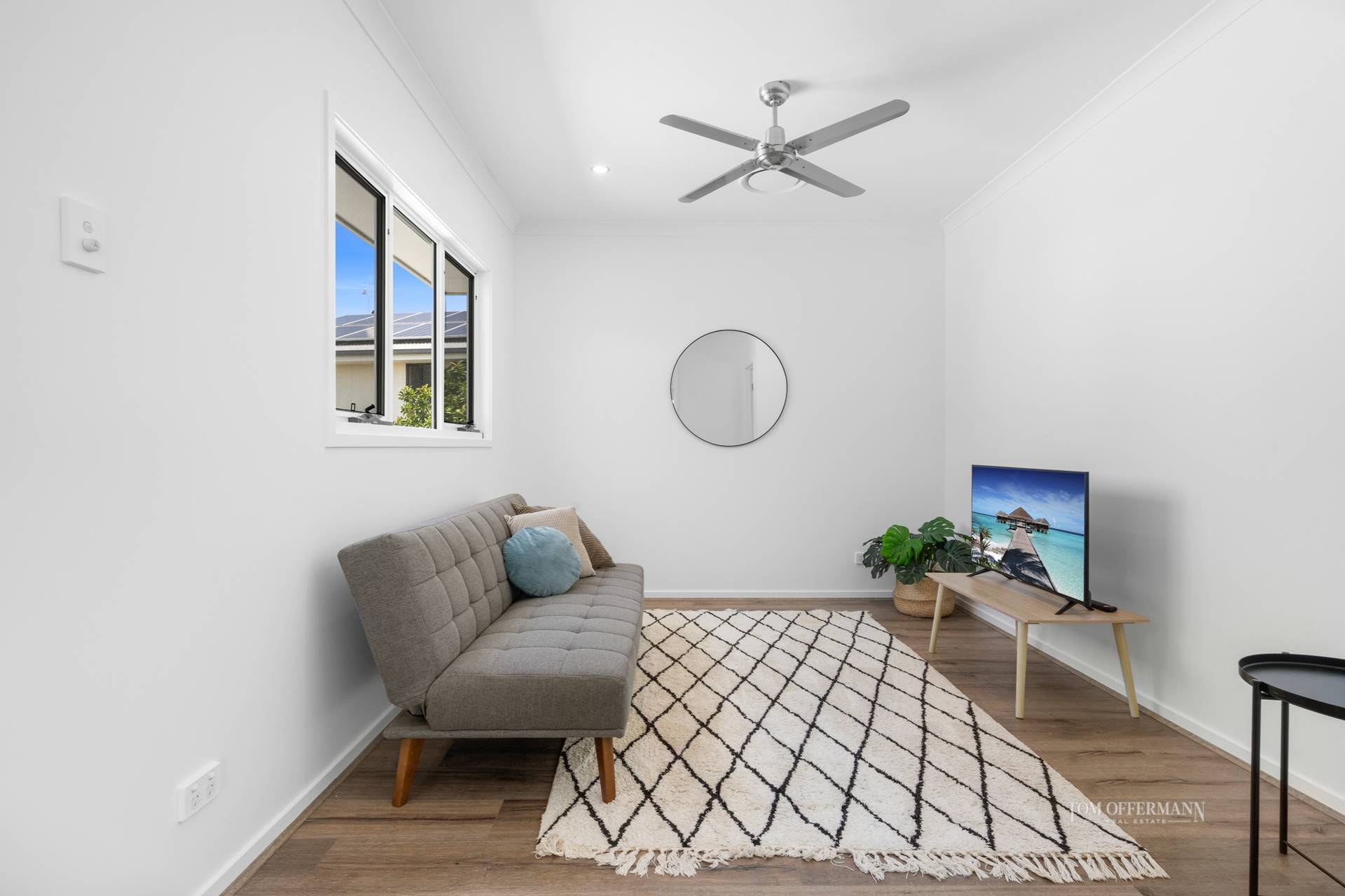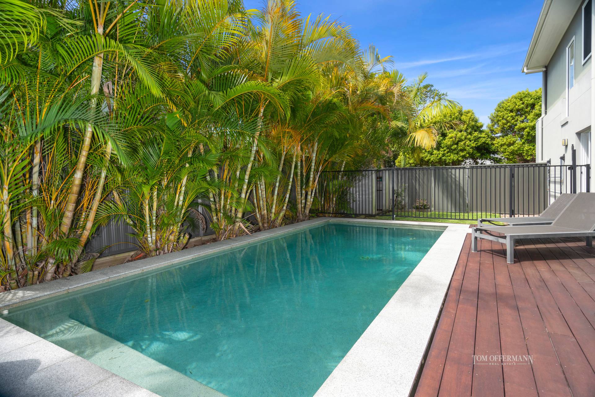 A lush lawn area, fringed by golden cane palms which continue around to the west side, is perfect for kids, when they're not splashing around in the pool or enjoying barbeques with family and friends.