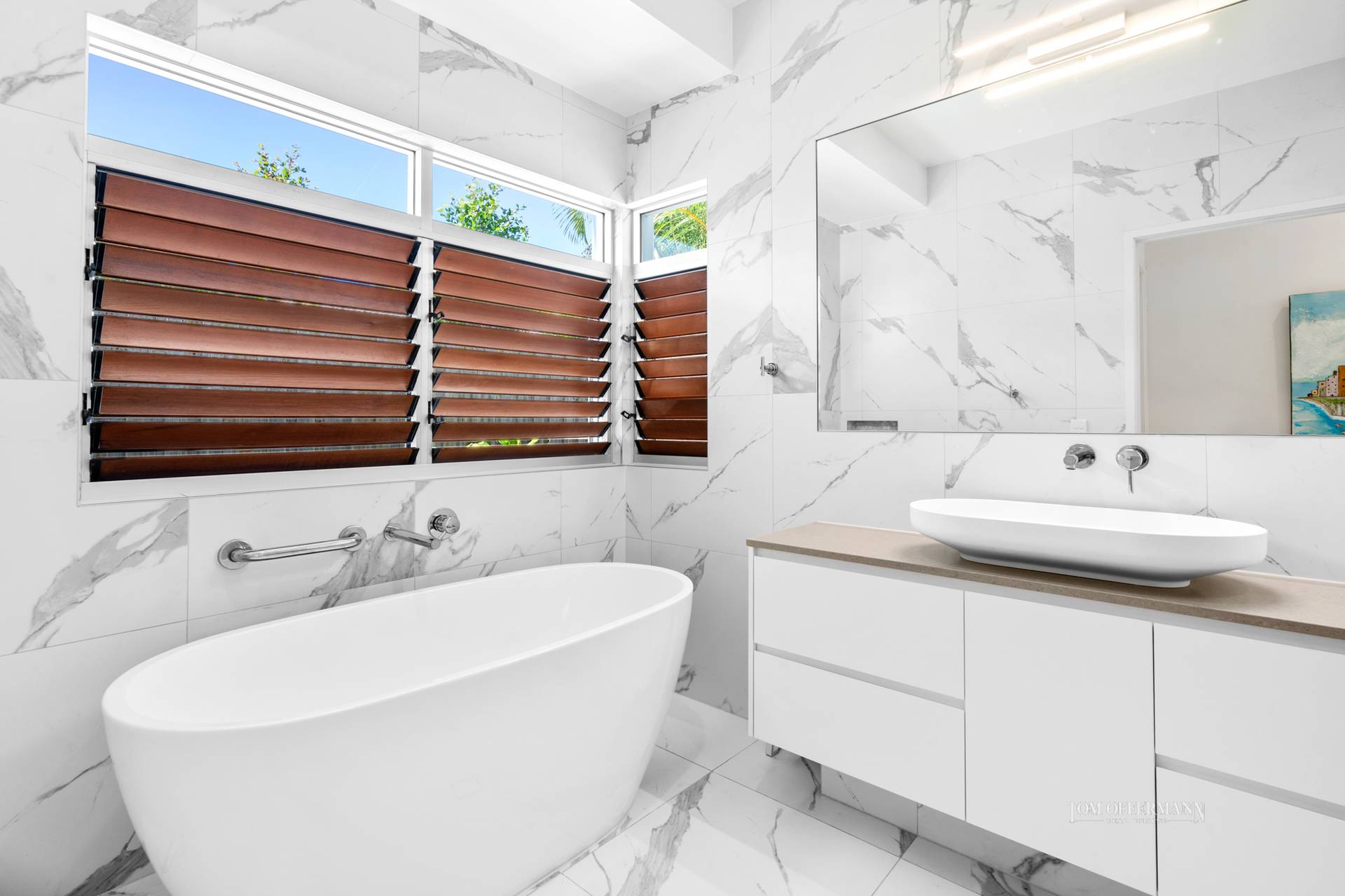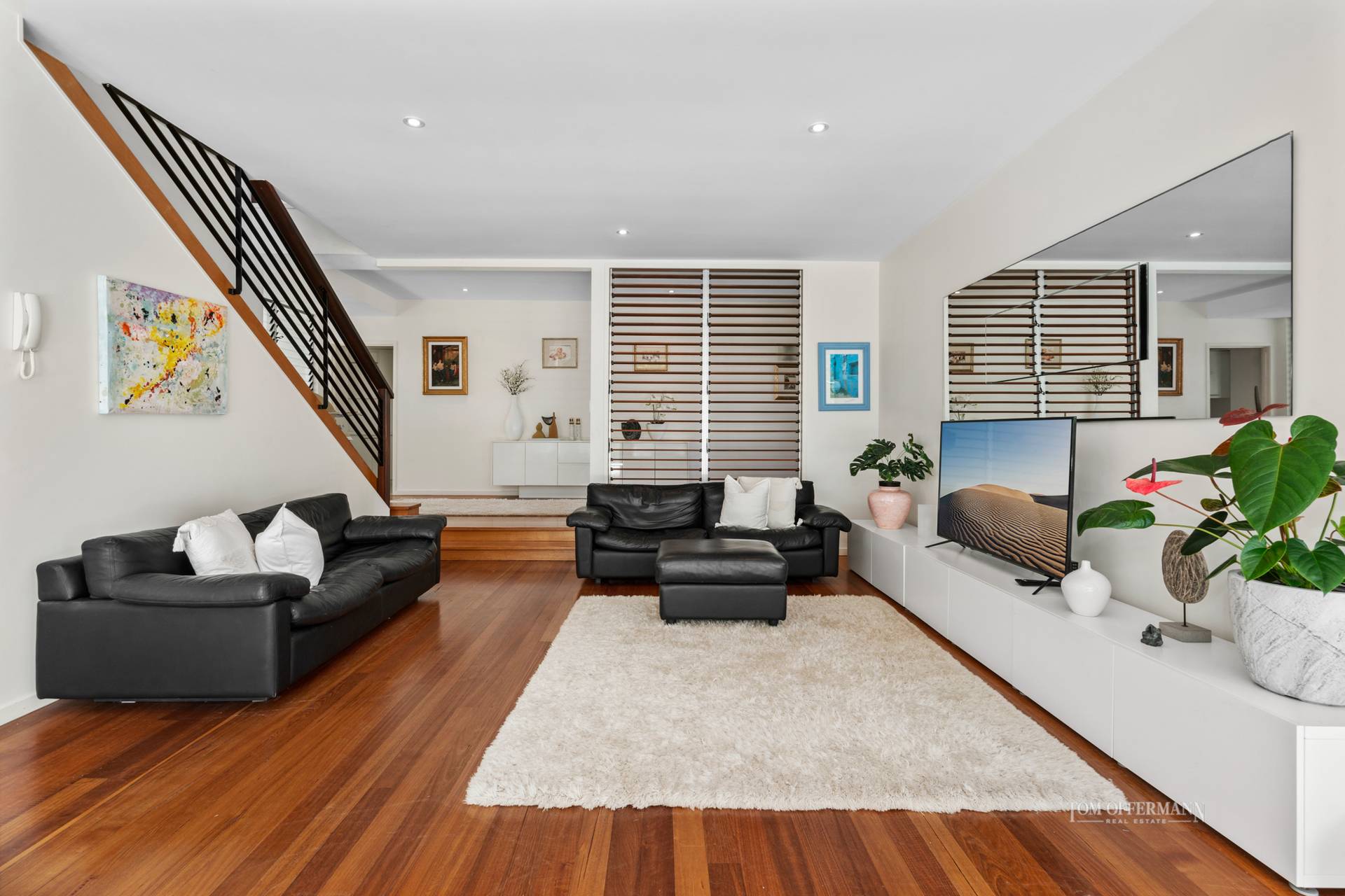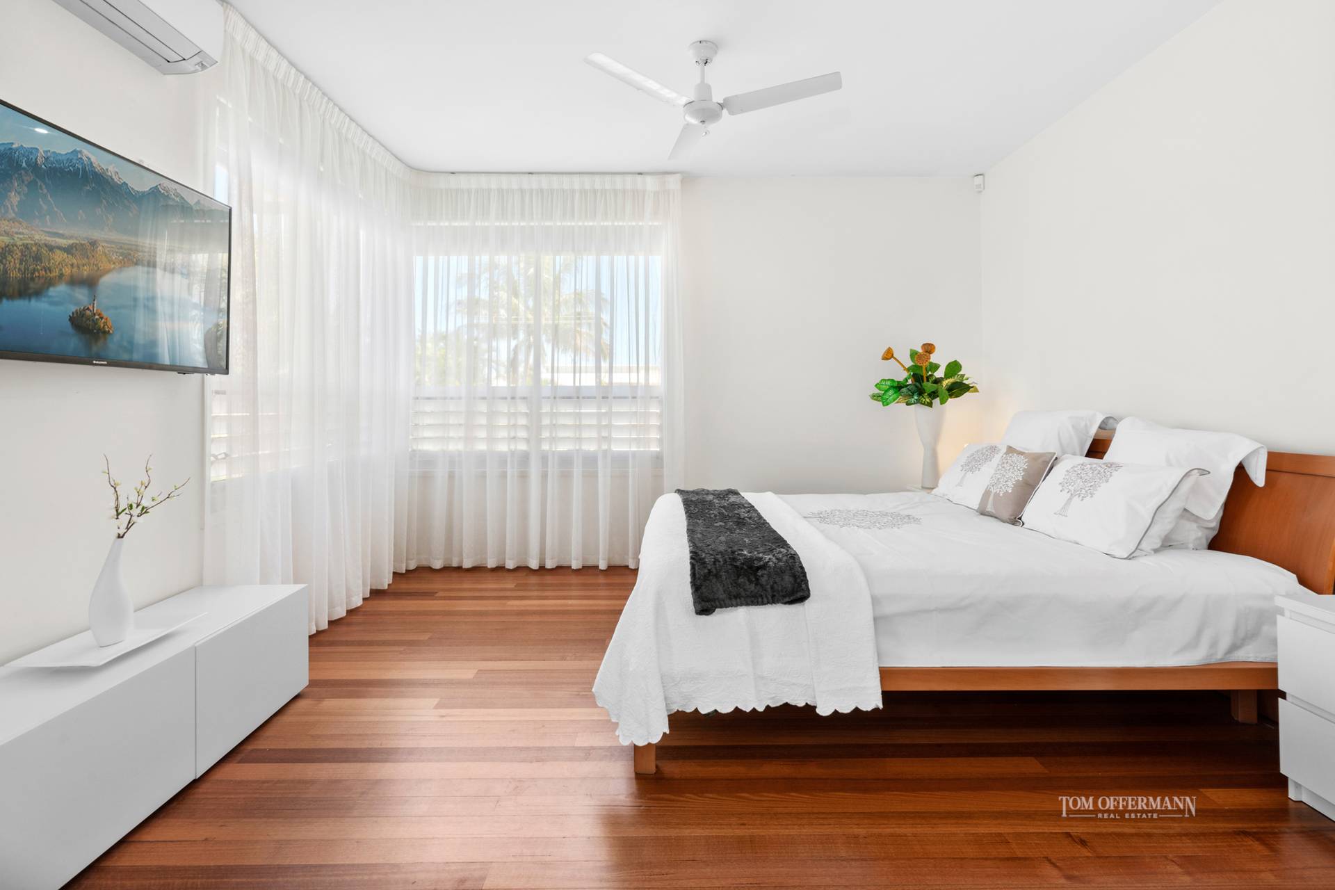 There are five bedrooms and two bathrooms, with the north-facing layout capturing warm natural light and refreshing sea breezes. Beautiful Tasmanian oak timber floors flow through out, combined with soaring ceilings and oversized windows.