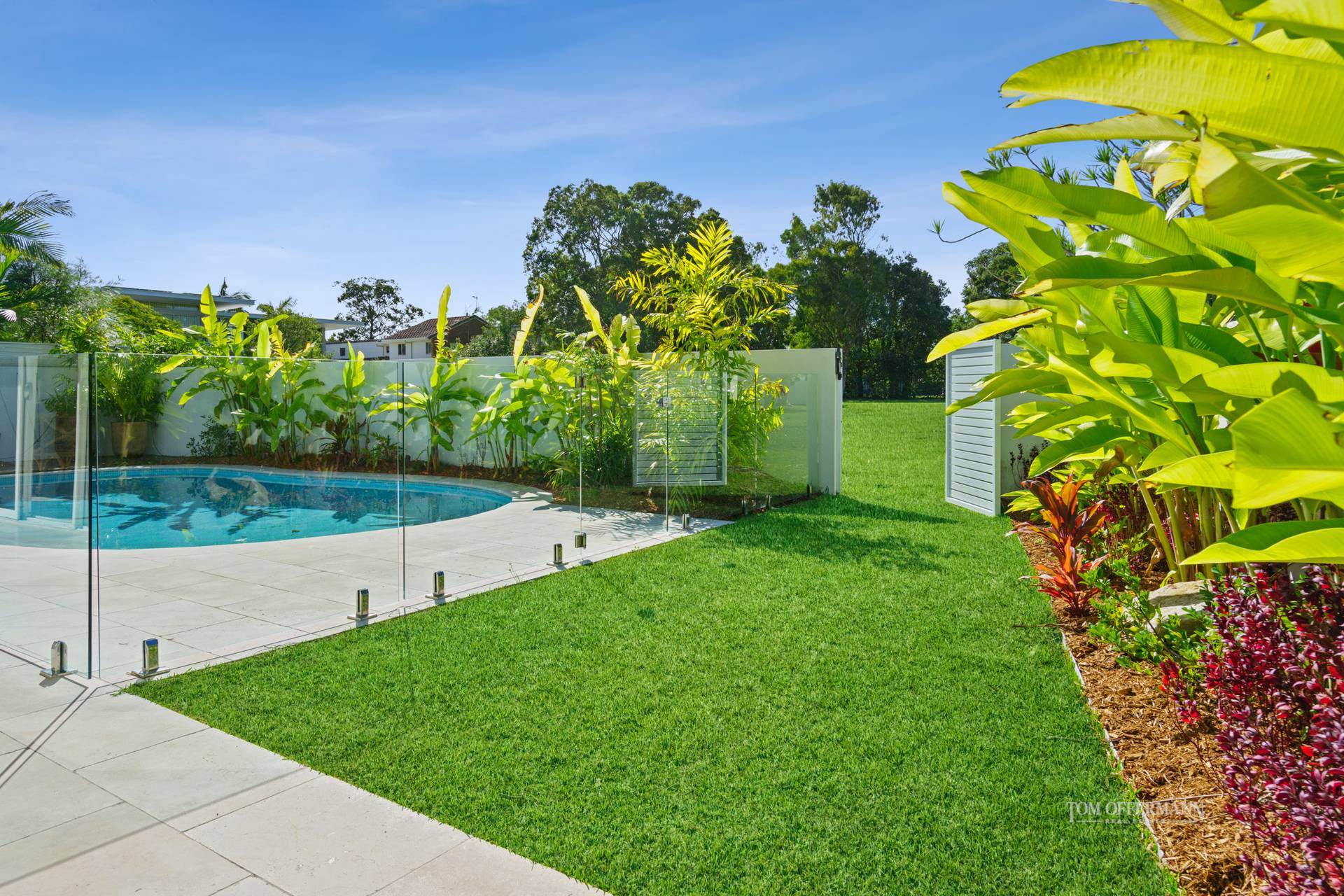 The pool with palm and heliconia-fringed rear garden has a deck ideal for sun worshippers. And when the kids get bored splashing around, open the back gate and send them out to the park, which has shade trees and is fully equipped with swings and slides.