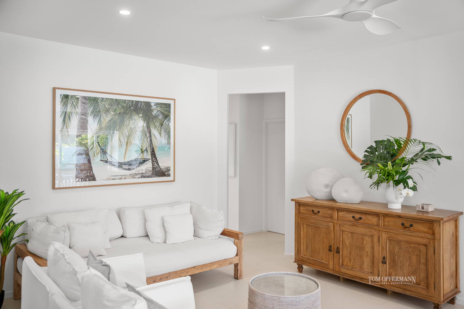 The magnetism of a year-round sun-splashed address on Hideaway Island, in a coveted circular enclave, is undoubtedly alluring. It is also instantly inviting from the lush streetscape with statuesque frangipani, white fence and white slatted timber walkway, to opening the timber and glass pivot door and a glistening interior.