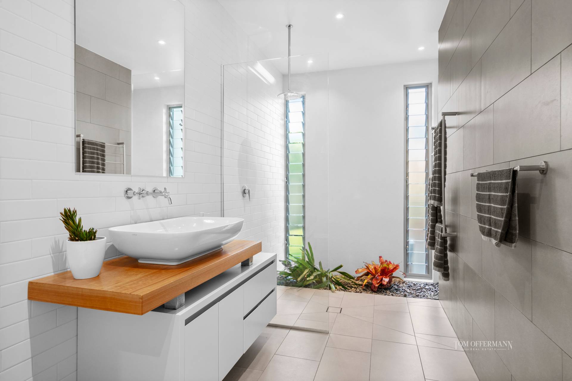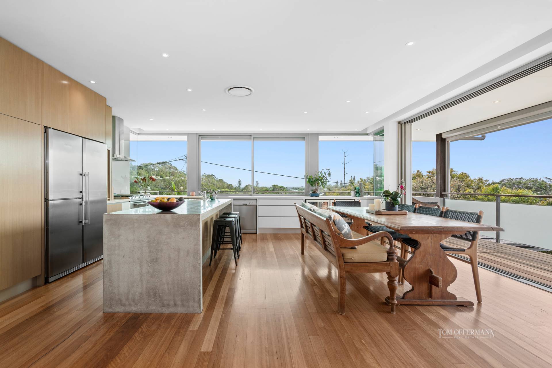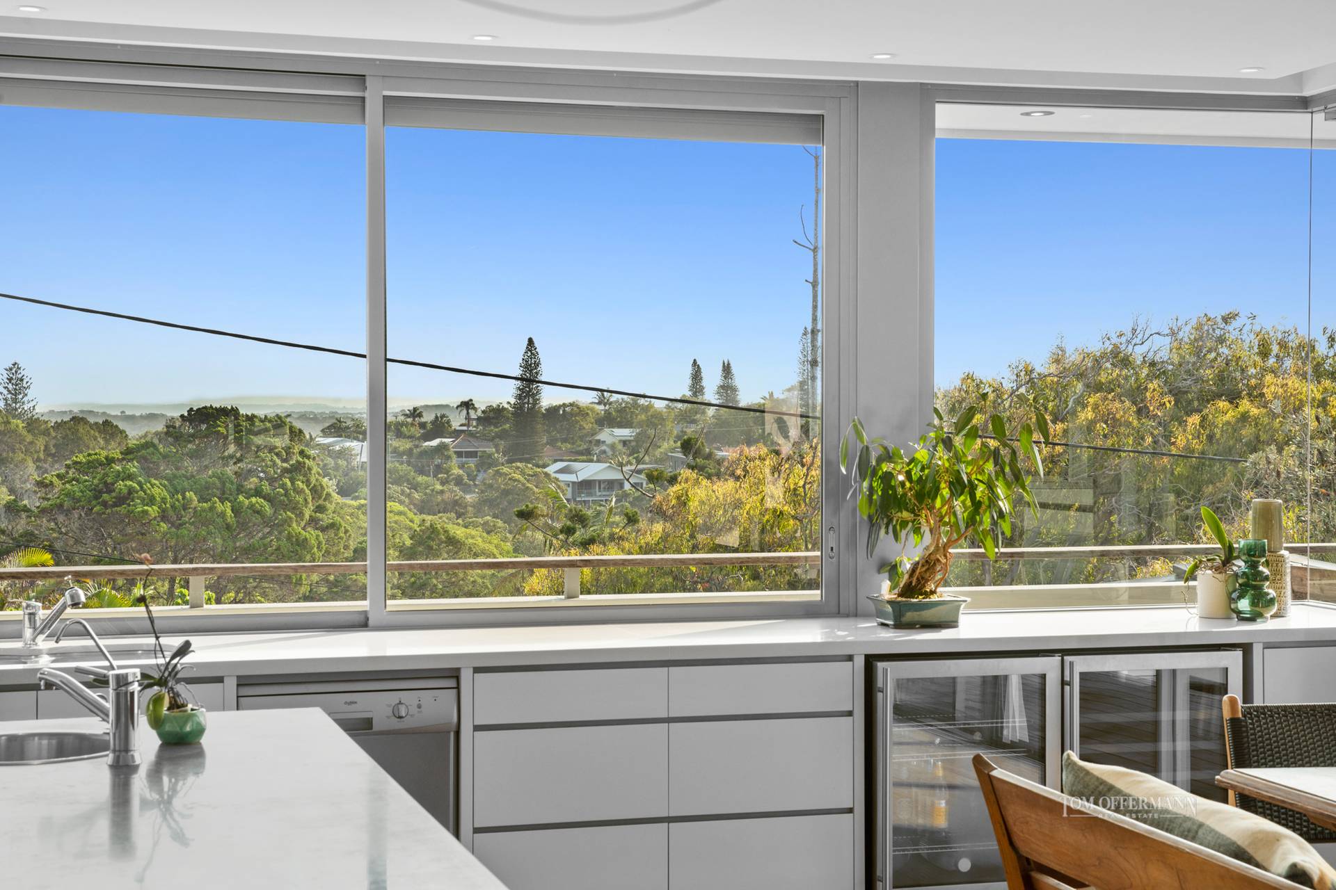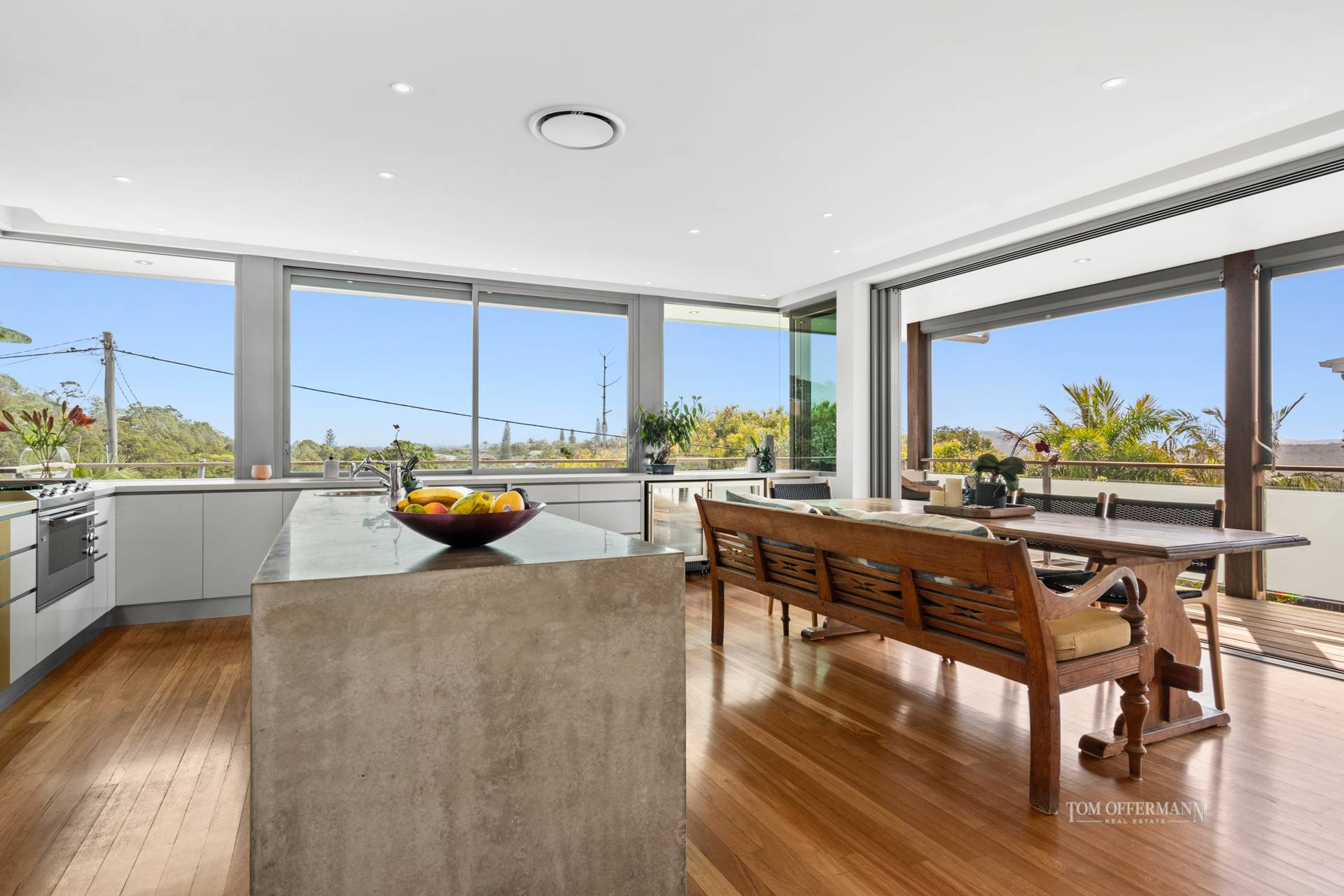 The super-sized L-shaped kitchen with picture sliding windows and magical views such as Mt Tibrogargan, sports spectacular mushroom-hued stone and