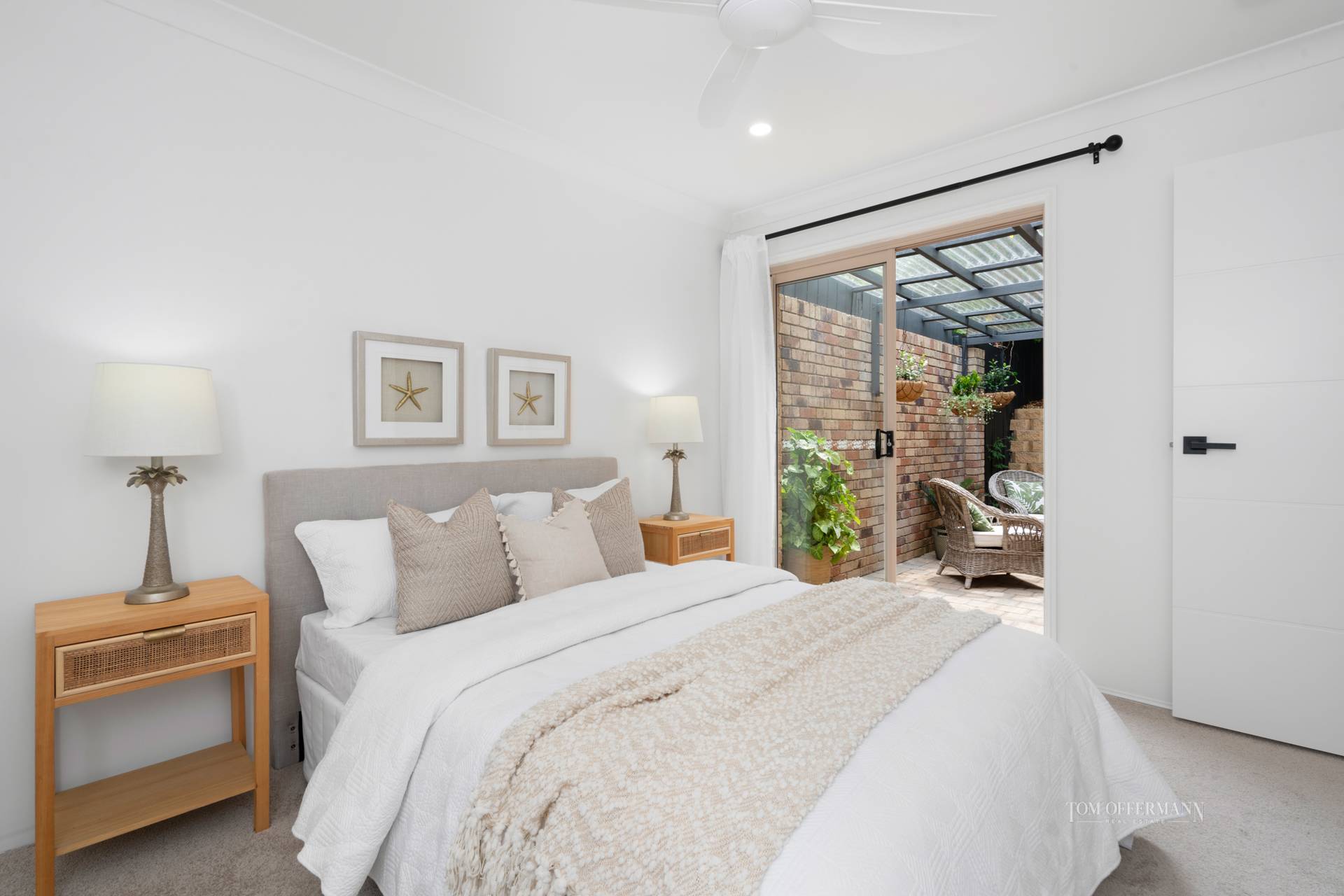 The two good sized bedrooms are light and bright, freshly carpeted and located to the rear of the property. Both bedrooms offer easy and direct access to your own private undercover courtyard and charming back garden. The master bedroom also has an additional fully renovated powder room.
