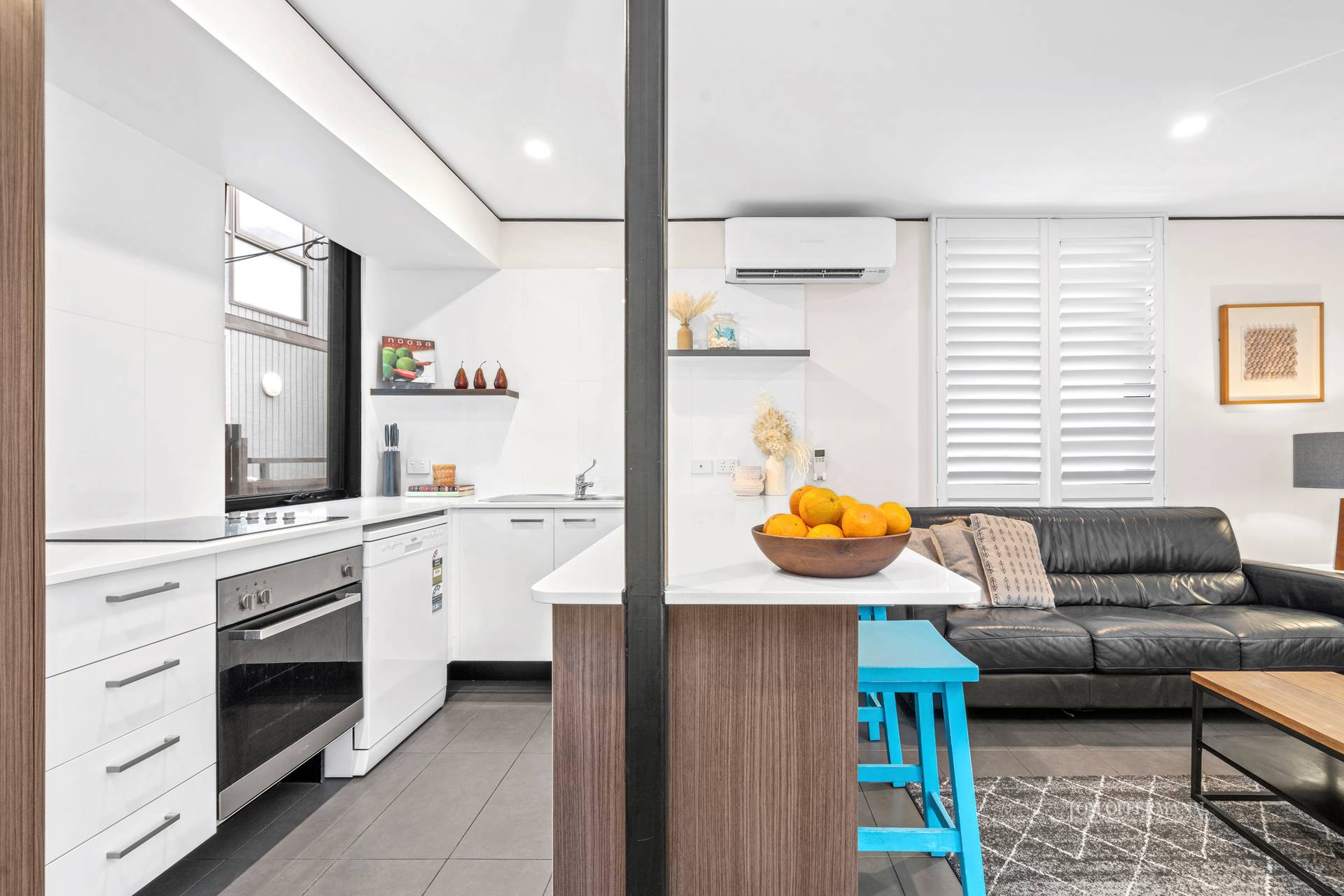 • About: 2-level; refreshed throughout; open plan living/dining upper-level w nth/east-facing 2.1m x 5m terrace; 2 bedrooms w ensuites & built in robes;, laundry & store room; aircon/fans; U-shaped kitchen w stone-topped 2-pac/timber fronted cabinetry incl semi-island/breakfast bar; bar stools, full size pantry, latest appliances & kitted out for visitors / holidaymakers.