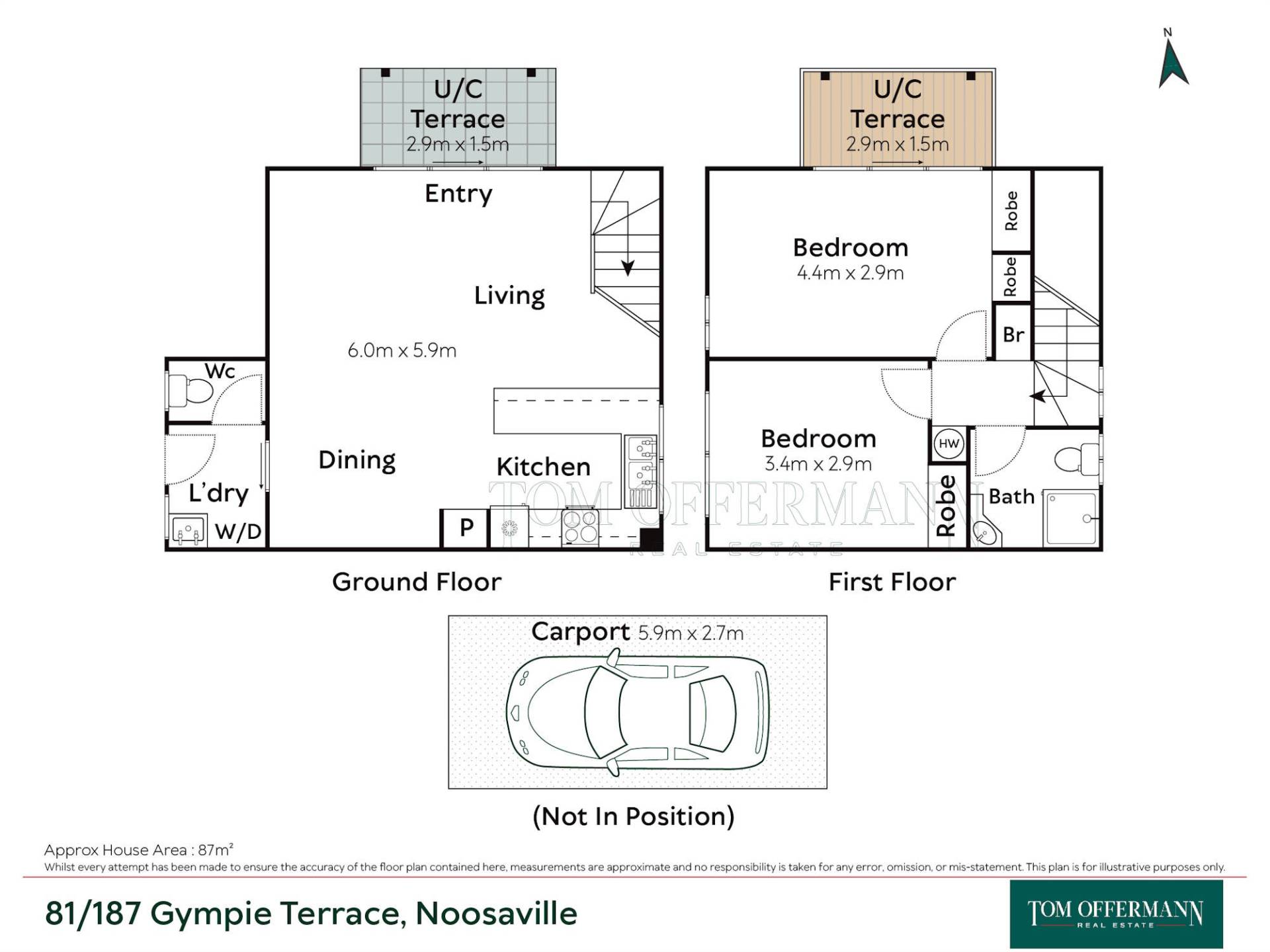 Upstairs there are two generous bedrooms both with built in wardrobes plus ceiling fans, the master bedroom is well equipped with air-conditioning to ensure year-round comfort and opens to a delightful balcony where you can sip your morning coffee and listen to the birdsong. The bathroom is nearby with a convenient separate toilet and laundry downstairs.