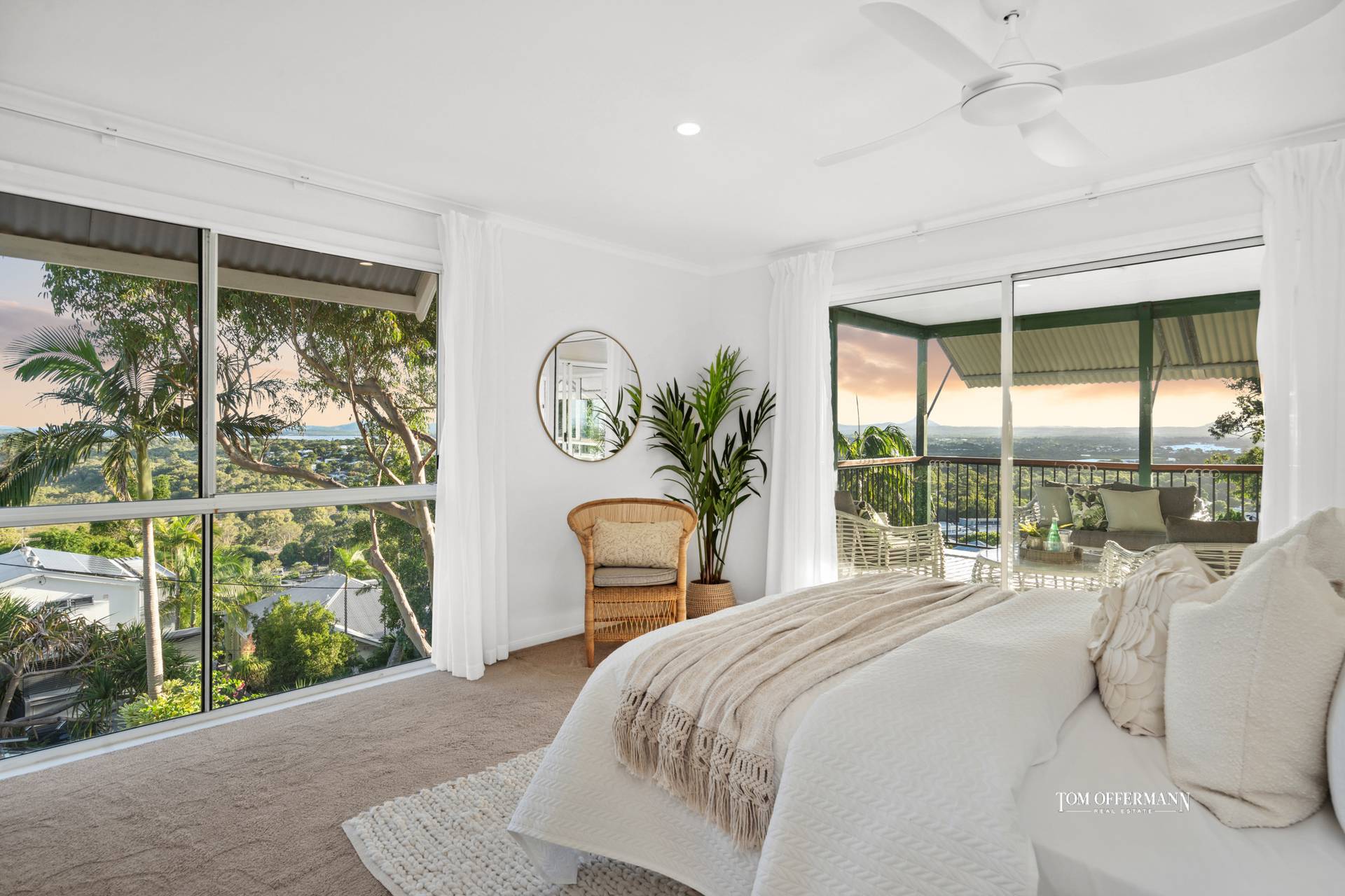 Seeing is believing. Look over a vast coastal playground with the Coral Sea and beaches stretching south along the coast on the left; in the front is Lake Weyba, its waterways, way beyond to the Blackall Range, Mt Tinbeerwah and the lush Noosa Hinterland; and sweeping right in the northerly direction, is the Noosa River. That is way in-excess of 180-degrees and let us not forget the back garden abuts the Noosa National Park. These views to forever, arguably surpass all others on Noosa Hill.