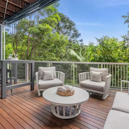 "The very private residence defines luxury on every level," explains Tom Offermann Real Estate agent Jesse Stowers, "and its location in the tightly held Bunya Lane cul-de-sac, is a small enclave of Peppers Noosa Resort, designed by renowned architect John Mainwaring.