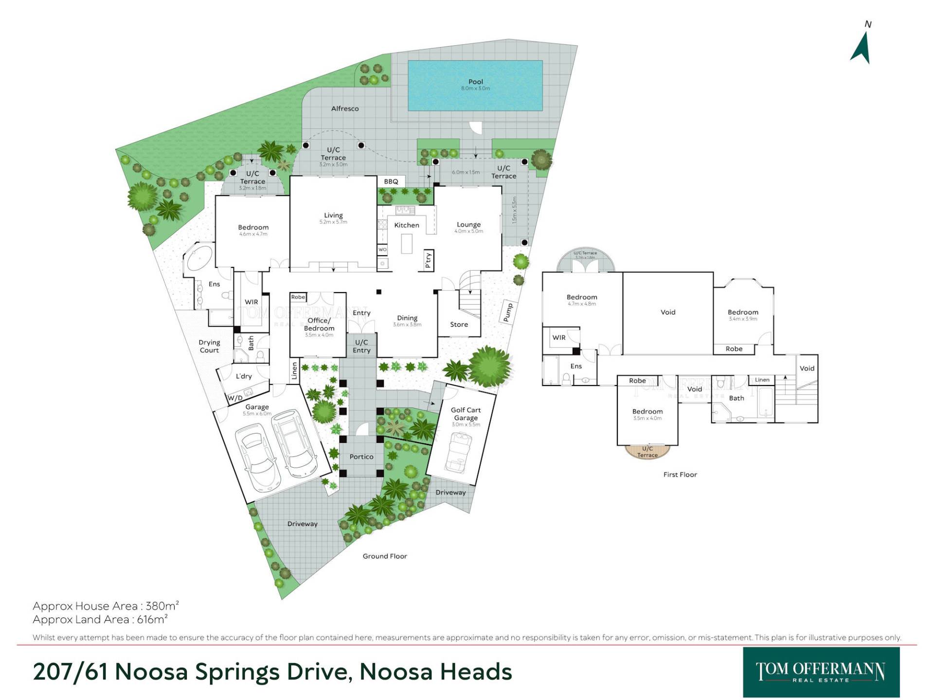 - Land Area: 616m2 Golf Course Frontage: 30m; overlooking Hole 15/Par 5, longest hole at Noosa Springs