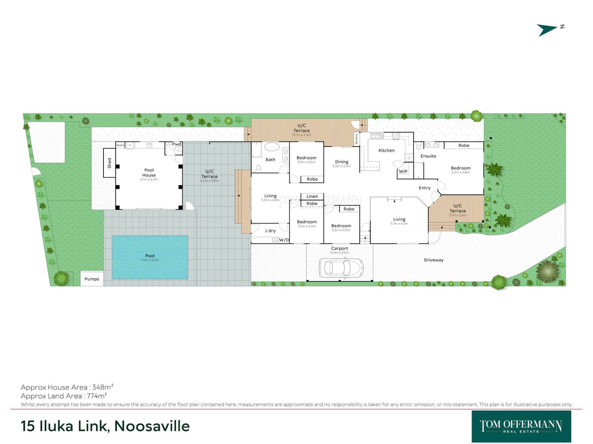 • Terraces: 3 undercover – 6m x 9.8m poolside; 10.1m x 2.4m off dining; 5.1m x 2.4m northside