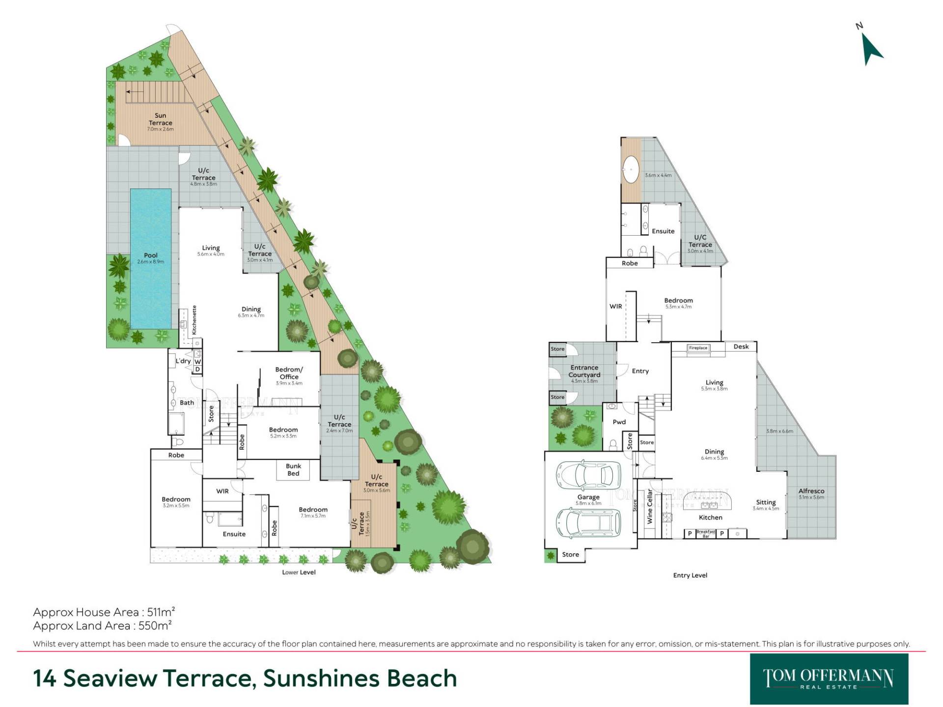 - Terraces: total 10 off all rooms east side w Noosa National park headland & Coral Sea views from entry level undercover/verdant filtered views incl garden lower level