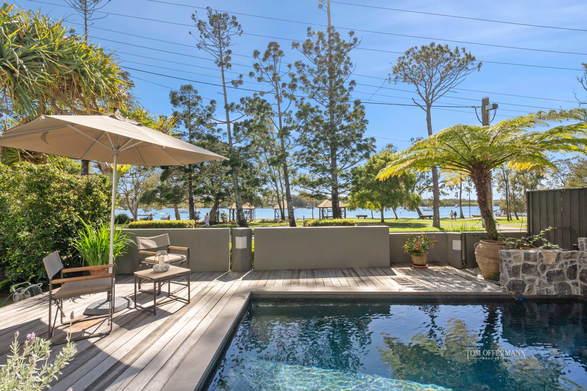 "Living and loving the good life in your private residence aka hideaway is the ultimate dream escape," comment Tom Offermann Real Estate agents Michael McComas and Rebekah Offermann. "This first-class location on Gympie Terrace will never lose its popularity. It runs parallel to the dog-friendly Noosa River foreshore and gazebo-dotted park where family barbeques, fishing, boating, and swimming in the shallow water, are just a few favourite pastimes.
