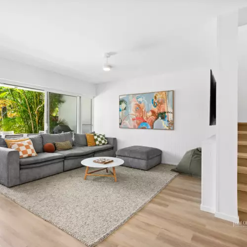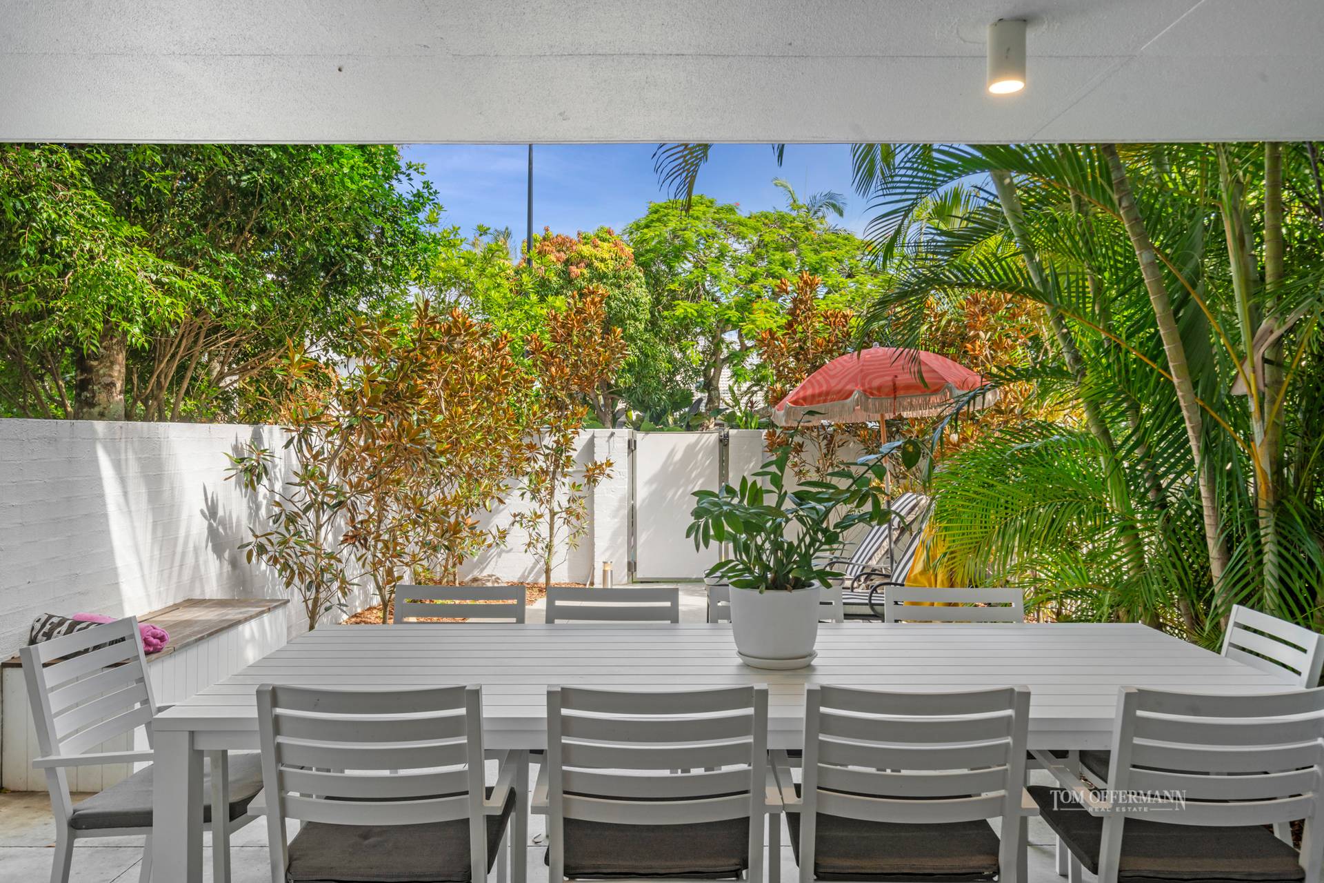 A high privacy wall has a secure gate opening into a large paved and very private courtyard which is drenched by northerly sunshine and fringed by tropical magnolias and swaying palms. Completing the alfresco space is the equally large undercover terrace. Whether enjoying barbeques with friends, relaxing under the umbrella after a day at the beach, socializing at the table for ten or a swim with the kids in one of the two on-site pools (one heated), the good life doesn't get much better.