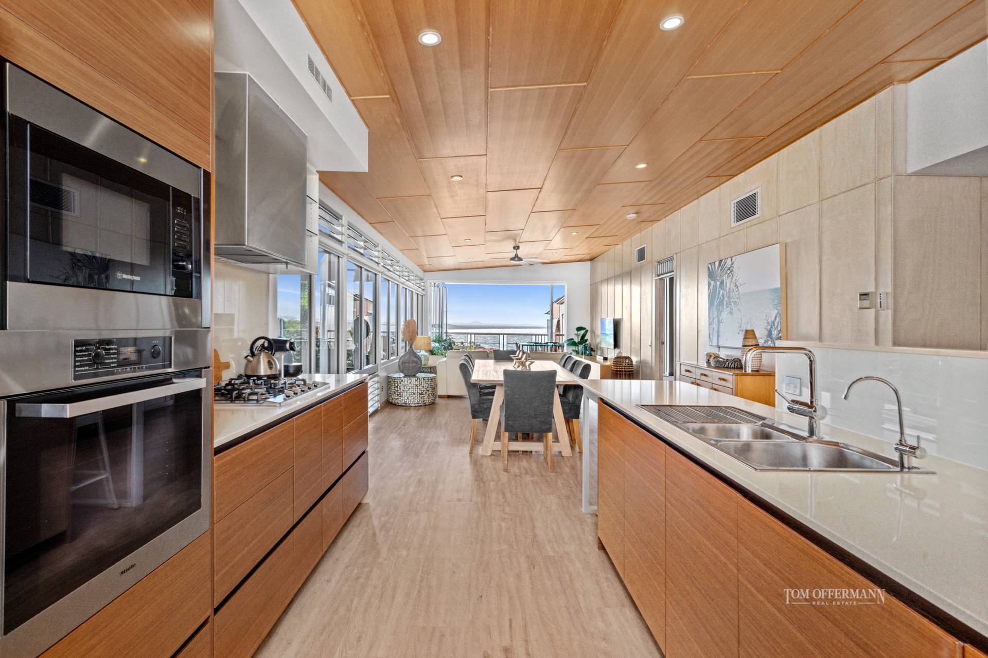 Tall walls of glass seemingly morph in a transparent fashion from indoors, to massive spirit-stirring alfresco undercover terraces which stretch almost the width of the residence. What a pleasure it would be, choosing between entertaining and leisure options and drinking in those salty breezes and multi-million-dollar north-facing views, or for something different why not make a big splash in the resident's only Brooke's pool. It's almost on the doorstep.