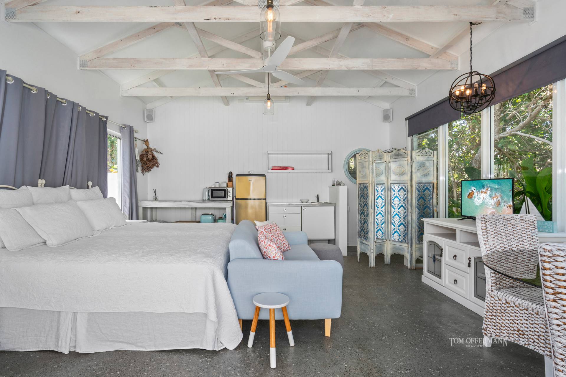Located just footsteps to a direct private pathway to the sand, no roads to cross, no traffic noise, nothing between you and the beach except pristine native bush; the setting could not be more idyllic.