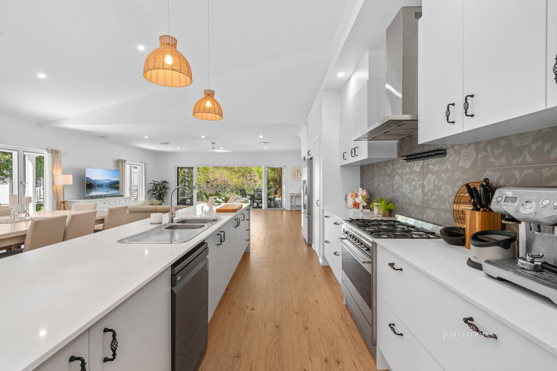 - Kitchen: stone benches; stainless steel appliances including 900mm gas cooktop & electric oven; soft close cabinetry; feature tile splashback; huge island bench/breakfast bar; plentiful storage & food preparation area