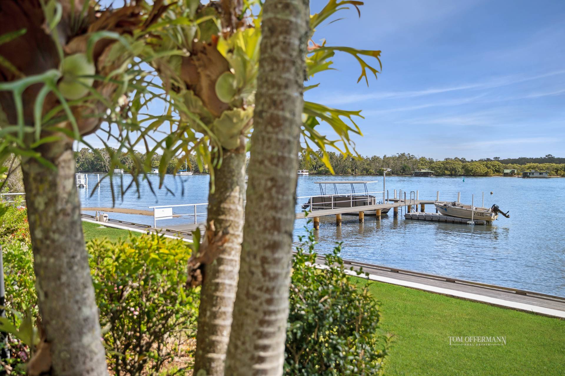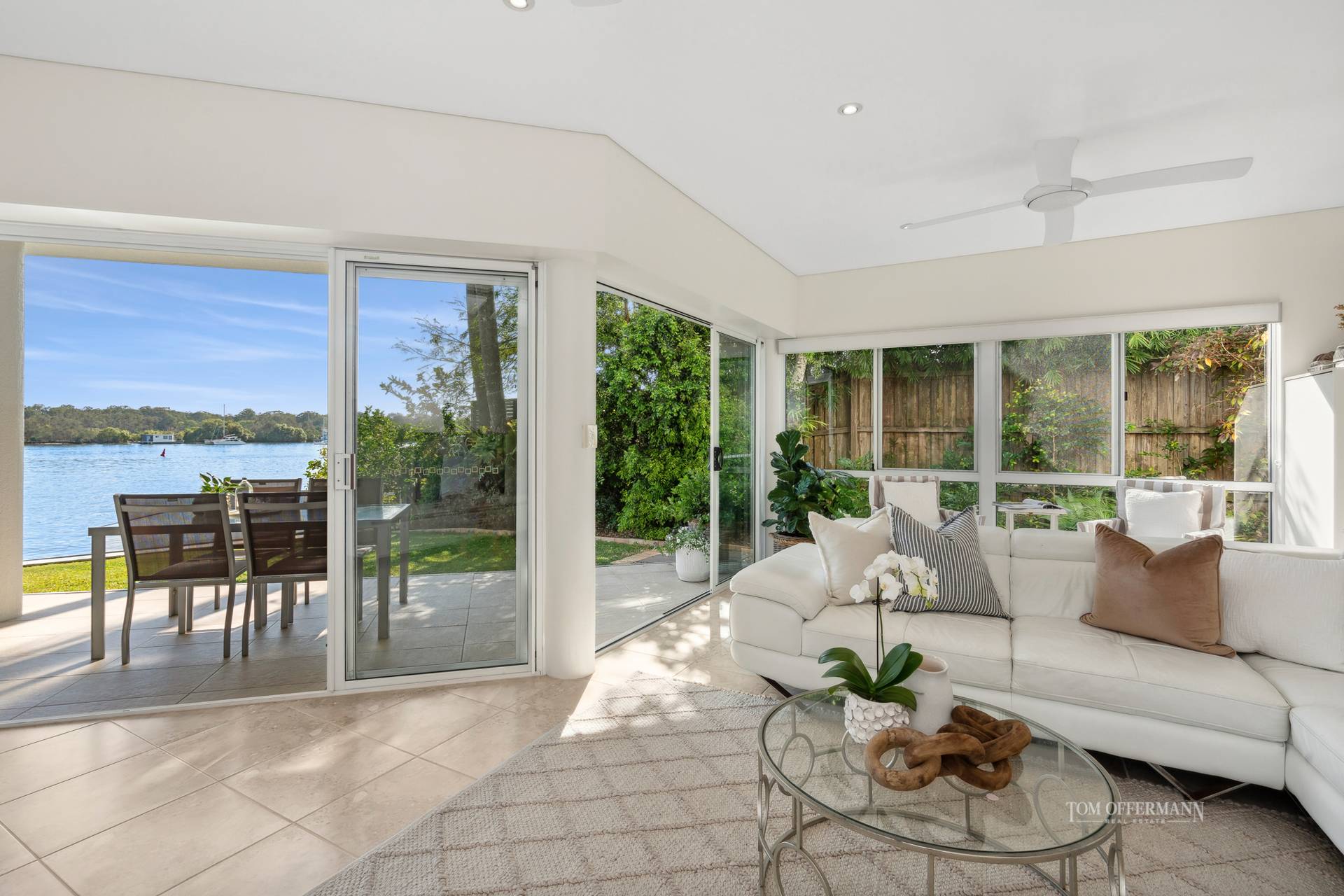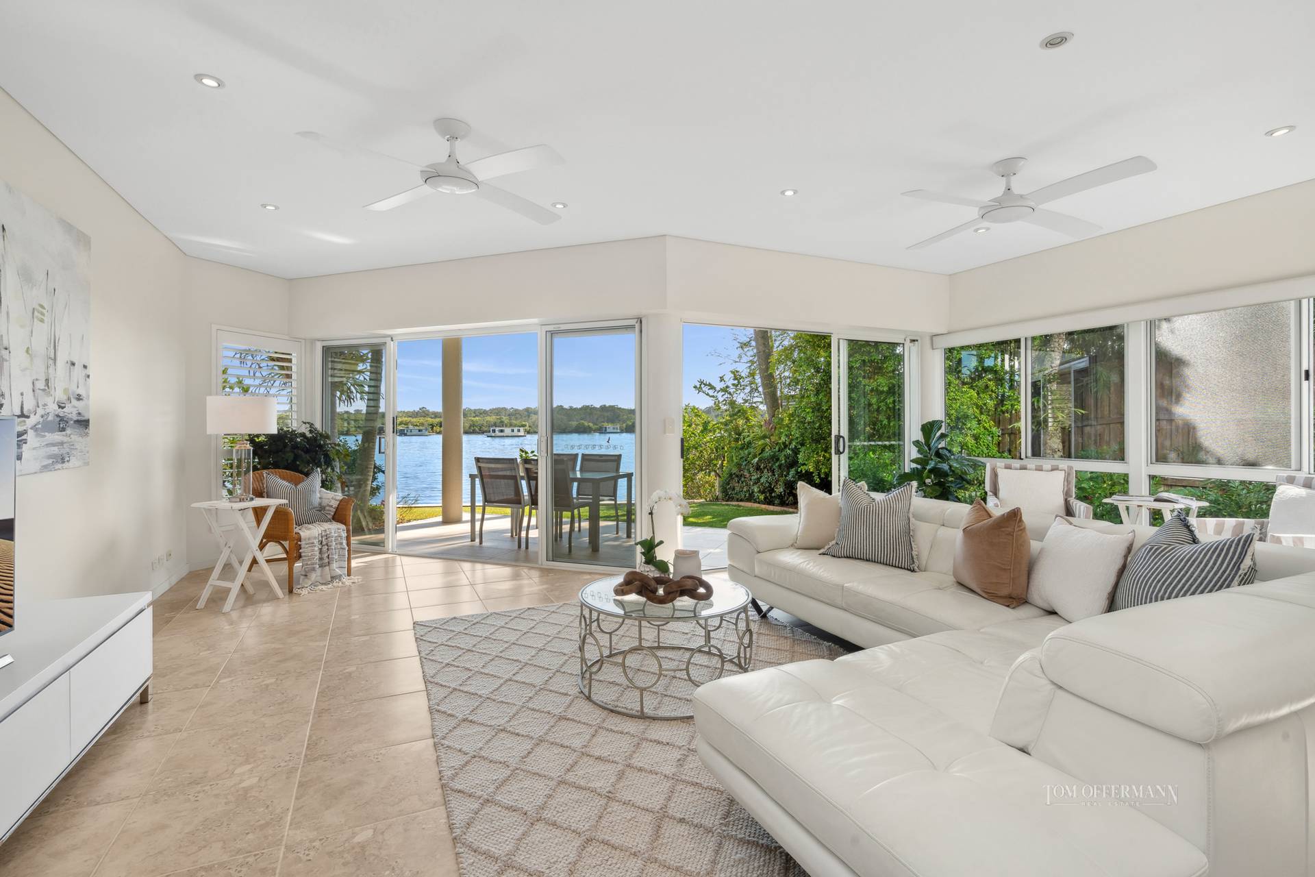 Providing the convenience of a single-level layout, it has an undercover whisper-quiet terrace with side garden and palm fringed lawn right to the water's edge.