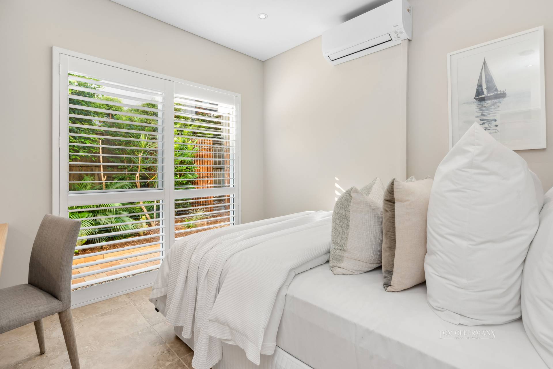 Entertainers will love the generous designer kitchen with creamy stone-topped cabinetry including large square island breakfast bar has all the necessary appliances, for creating dishes to excite dinner party guests, salads for an alfresco barbeque or the boat, and snacks for sundowners on the jetty.