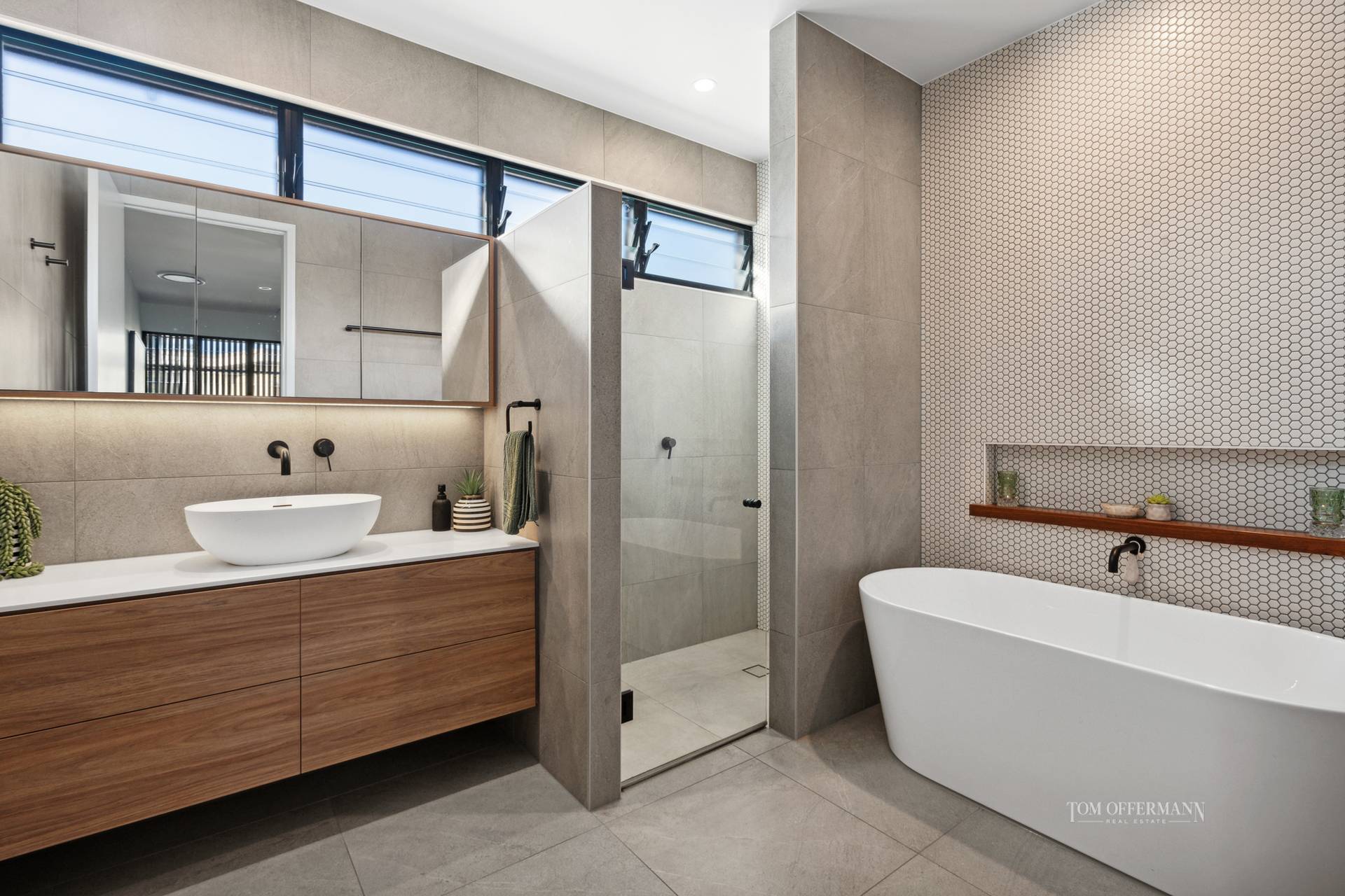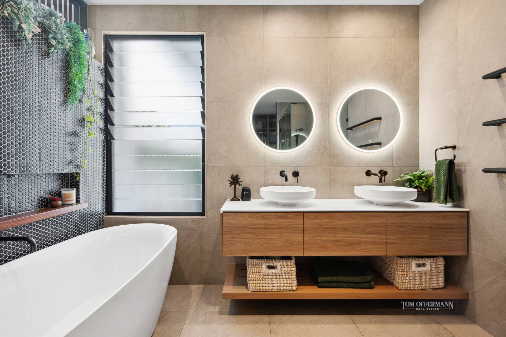 Head up the bespoke timber staircase and you will find a second family living area, four generous bedrooms, and three luxurious bathrooms. The lavish master suite is a tranquil haven with sensational water views, a private sitting area, large walk-in robe, and a decadent ensuite with a standalone tub, king sized shower, matte black tapware, floor to ceiling tiles, and double floating vanity. You will wake up every day feeling as though you are in your very own private resort.