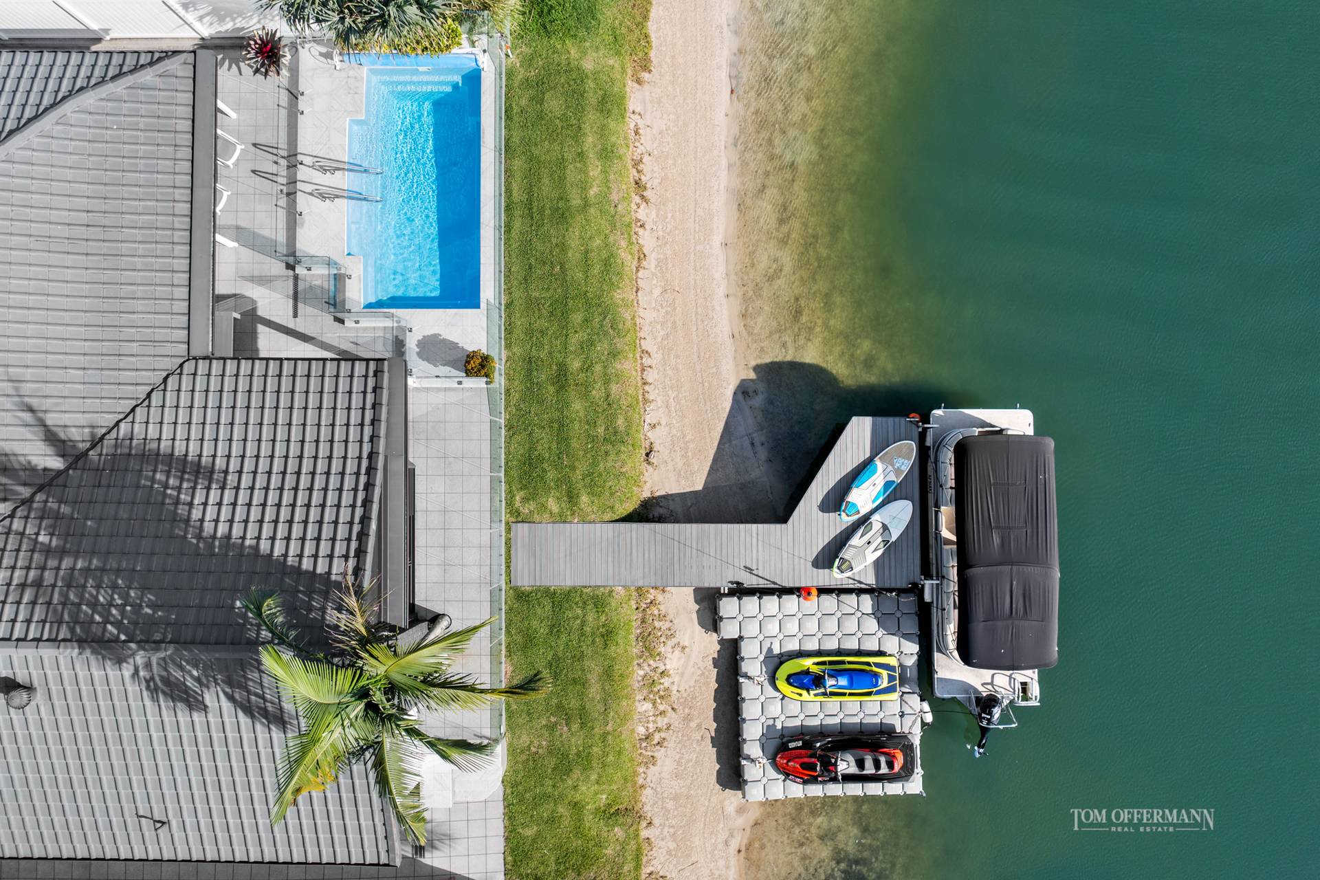 The magnetism of paradise on a sun-kissed 20-metre-wide waterfront with a white-sand tidal beach, jet ski pontoon docks, extended jetty, and broad views of the turquoise waterways, is undeniable. Yes, this is holiday heaven on tap.