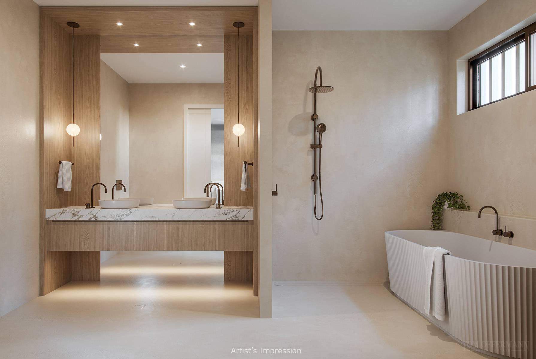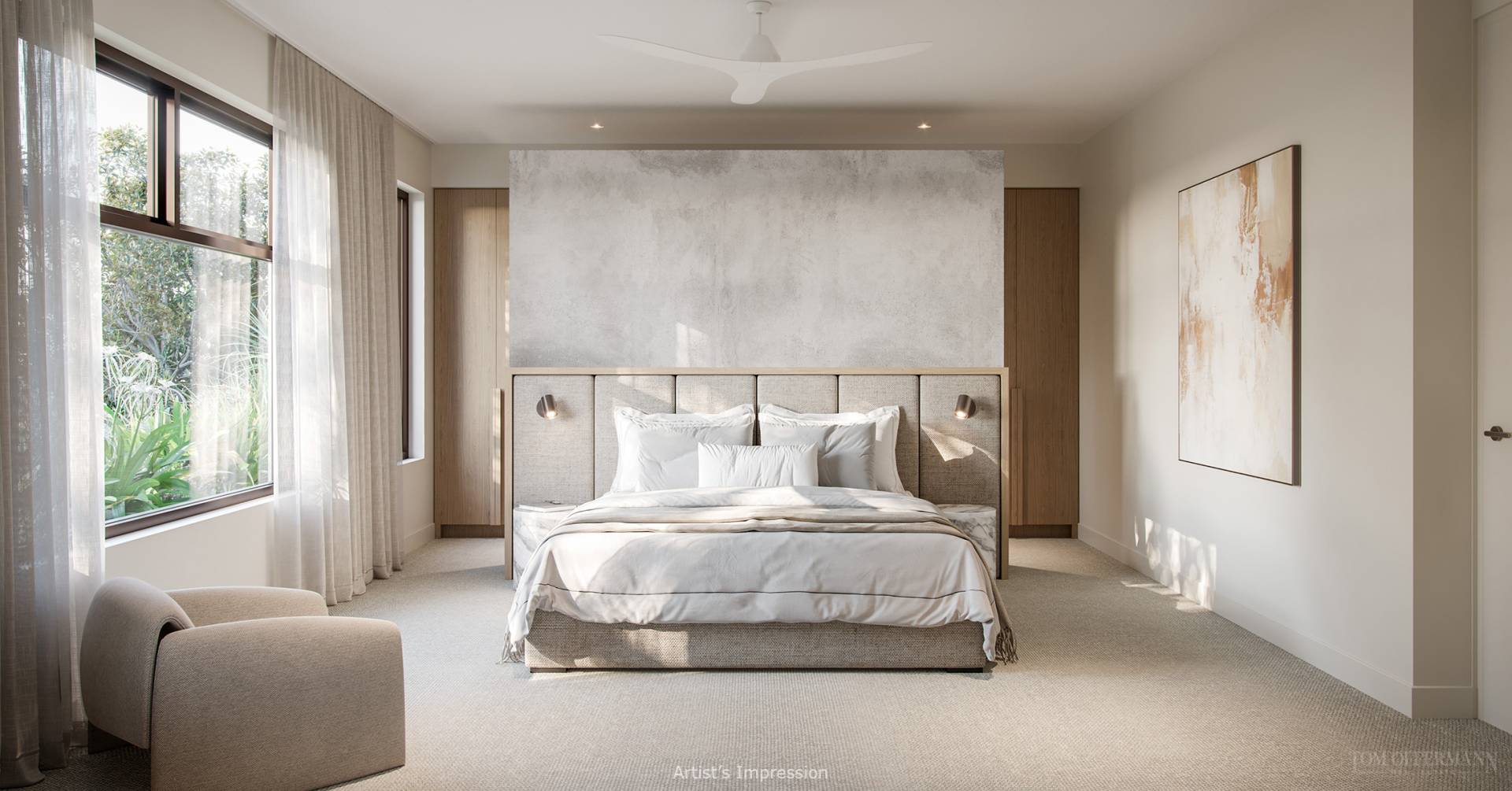 LUJO is finessed to the nth degree with high-end everything, including state-of-the-art kitchen appliances and stunning stone-topped cabinetry, including an island breakfast bar. Exceptional finishes and accents, from calacatta marble, timber flooring, custom bathrooms, and beech joinery to wispy linen sheers and lime-washed paint finishes, complement the overall aesthetic.