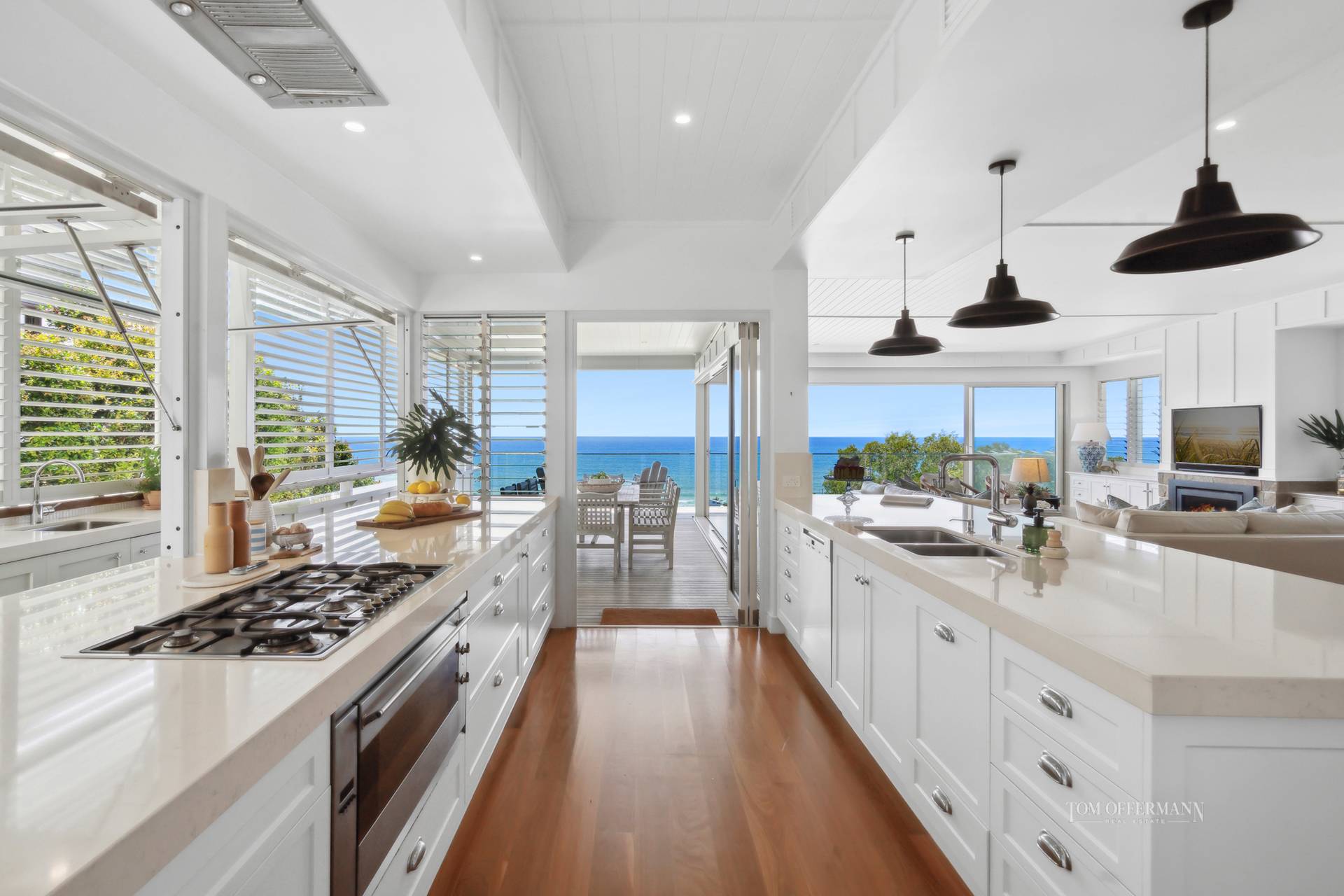From indoors, the inspired primarily L-shaped kitchen with sandy stone-topped cabinetry including island breakfast bar, has all latest appliances, a walk-in pantry plus Coral Sea views to excite every passionate entertainer.