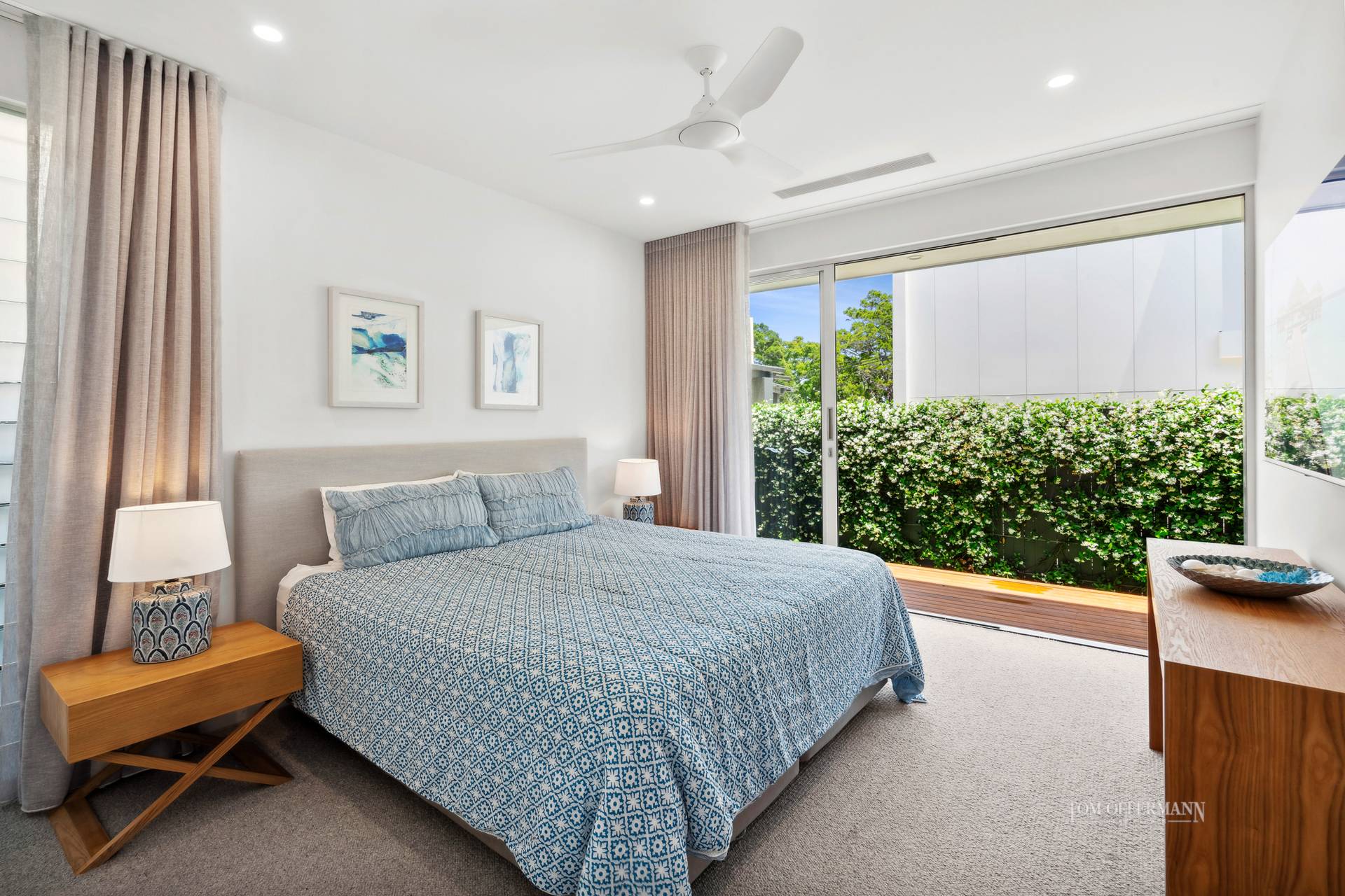 Downstairs an additional large bedroom has built-in robes, ensuite and access to the terrace as well as garden with fragrant jasmine.