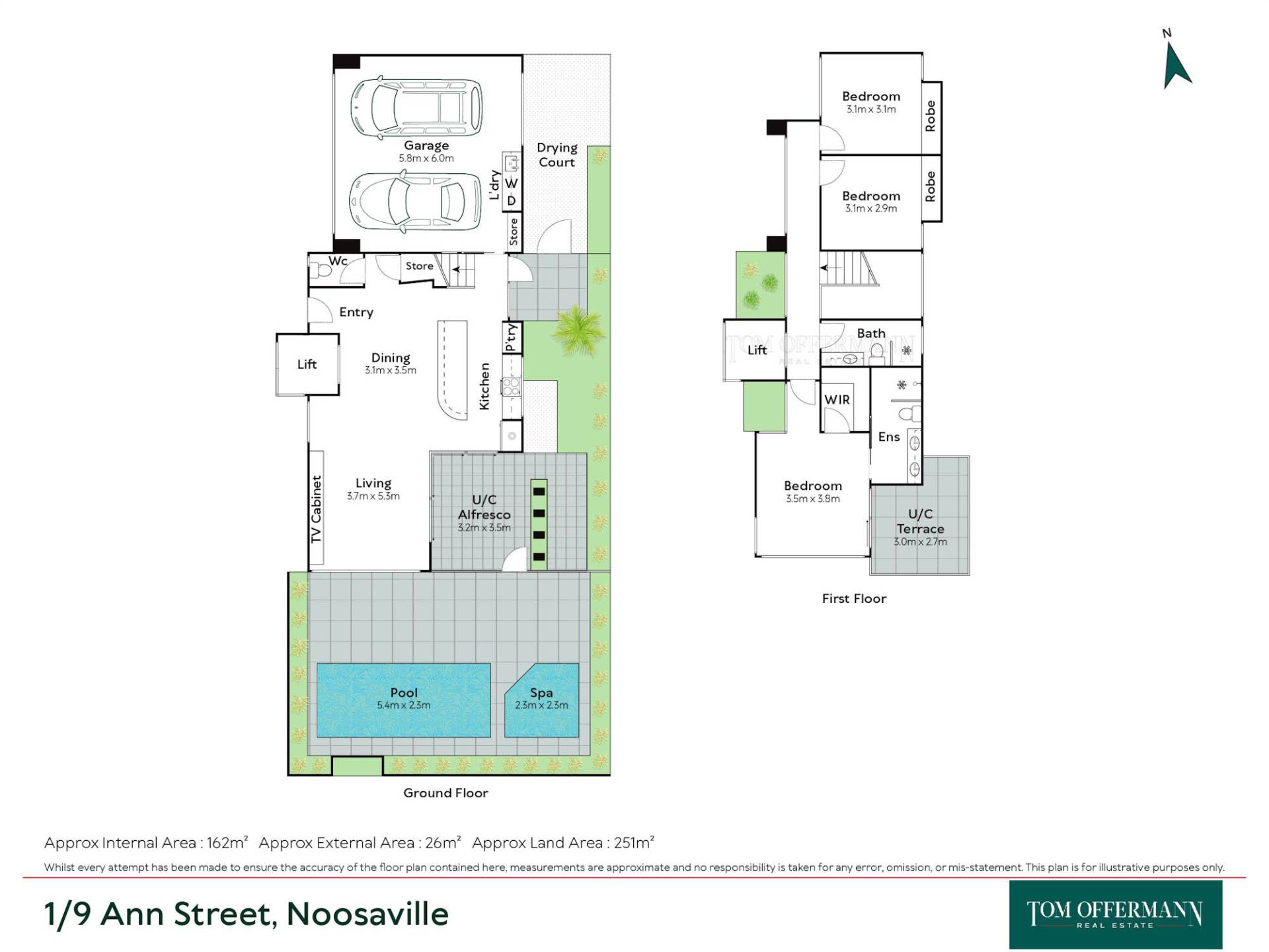 • Pool & Spa: 5.4mx2.3m & 2.3mx2.3m w aqua mosaic tiles