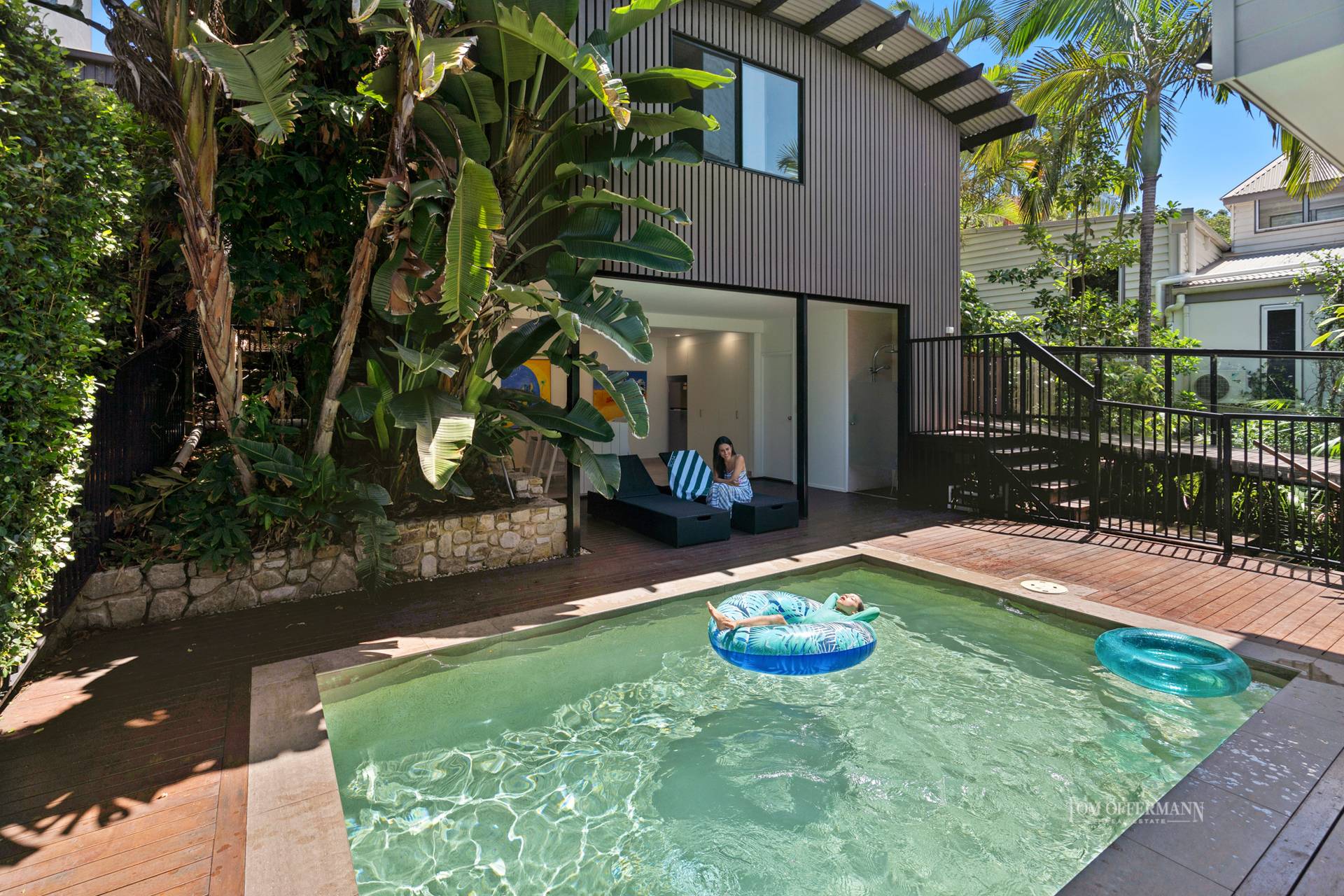 • Pool: 4.4mx2.9m sandstone edge; surrounded by timber sun terrace incl undercover leisure space, powder room & laundry w LG washer & Electrolux dryer