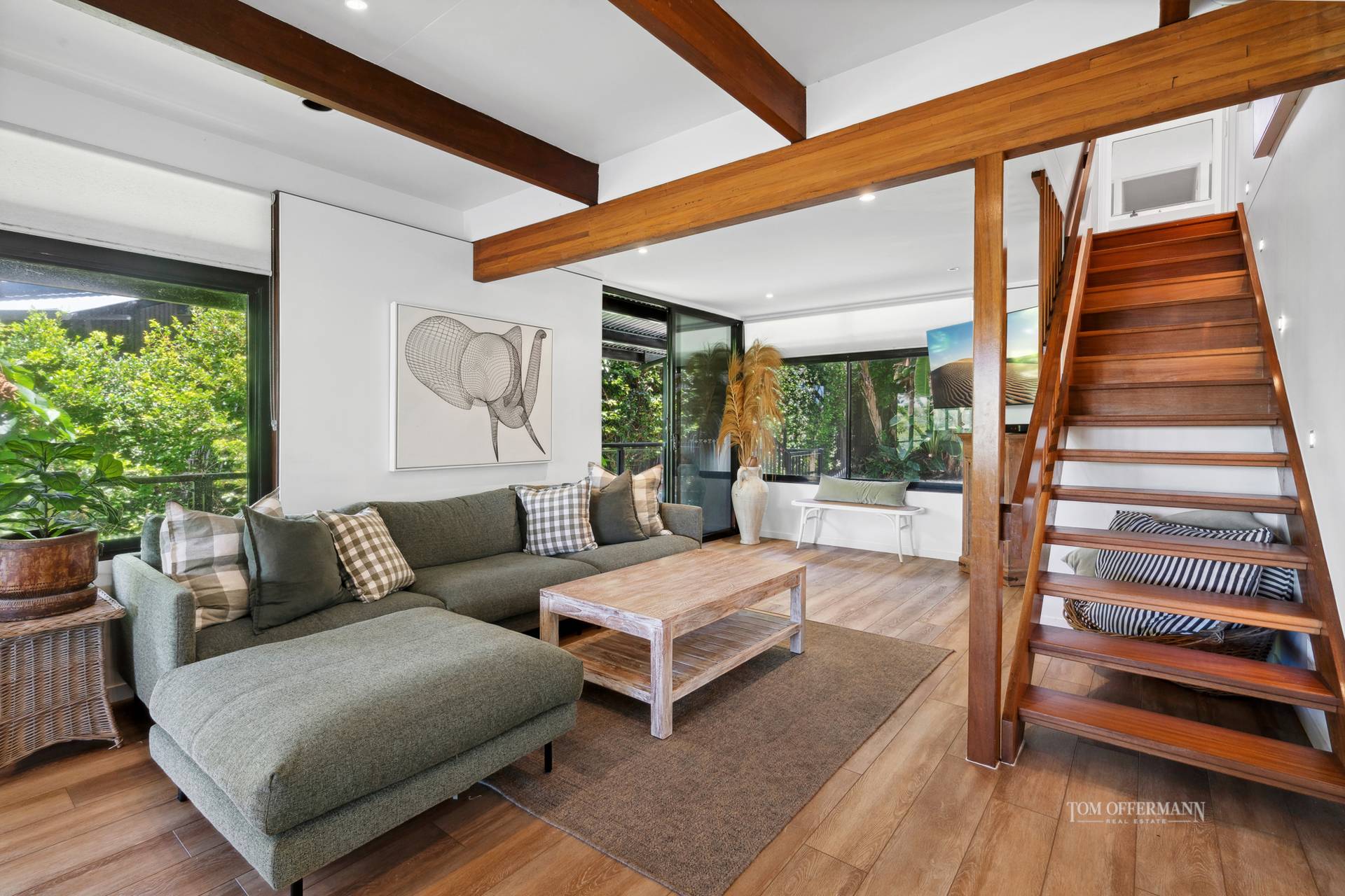 To complement, is an acutely desirable beach house retaining its original contemporary status thanks to the late great architect Gabriel Poole, a pioneer of what was considered quintessential Noosa design. It not only has a commanding presence in a beachfront location, but also has a private path to toes-in-the-dazzling white sand, the pooch-friendly off-leash area, and treasured surf breaks for the super stoked.