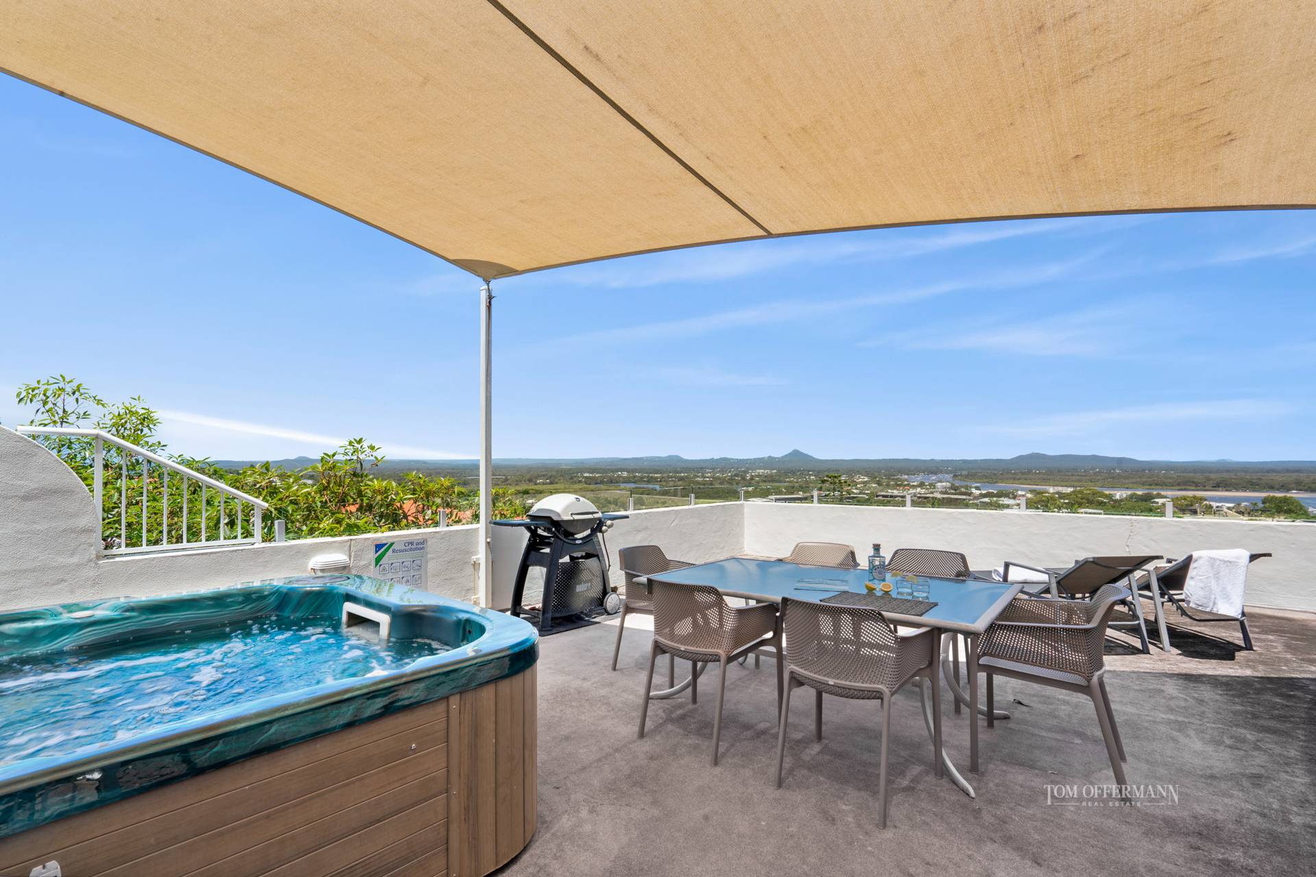 Exceptional lifestyle appeal combined with sophistication will take your breath away in this Noosa Heads oasis. Showcasing panoramic views over Noosaville, the Noosa River, the Hinterland including Cooroy Mountain and out across Laguna Bay, this 'Bali Hai' penthouse is an idyllic sky home. Wake up to the sound of palm trees swaying and enjoy sunsets of the evening with champagne on ice celebrating the good life.