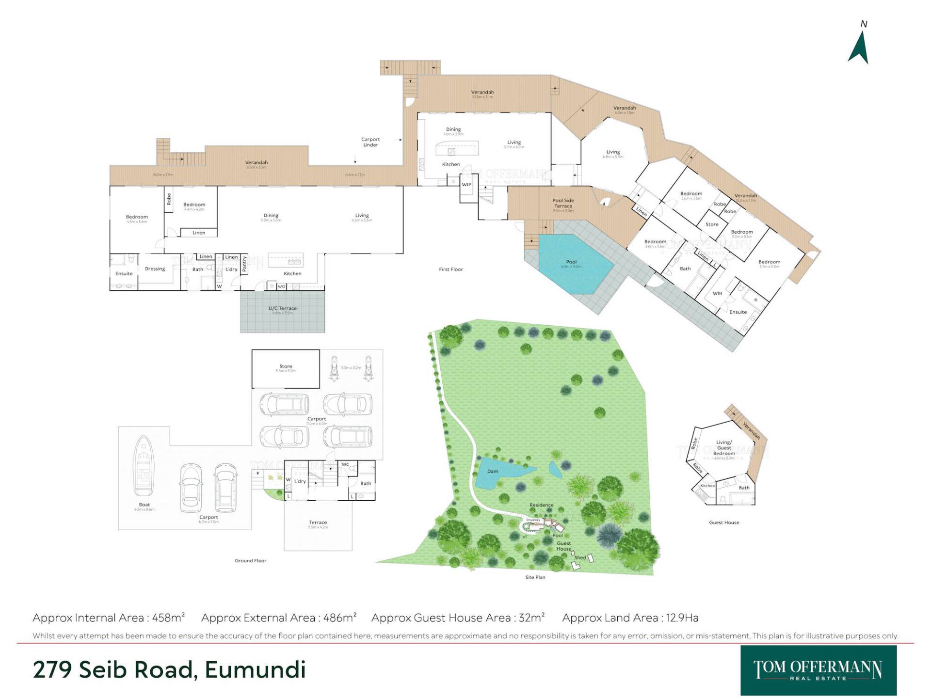• Residence Areas: internal 458m2; external 486m2 incl 52.4m+ nth side verandah