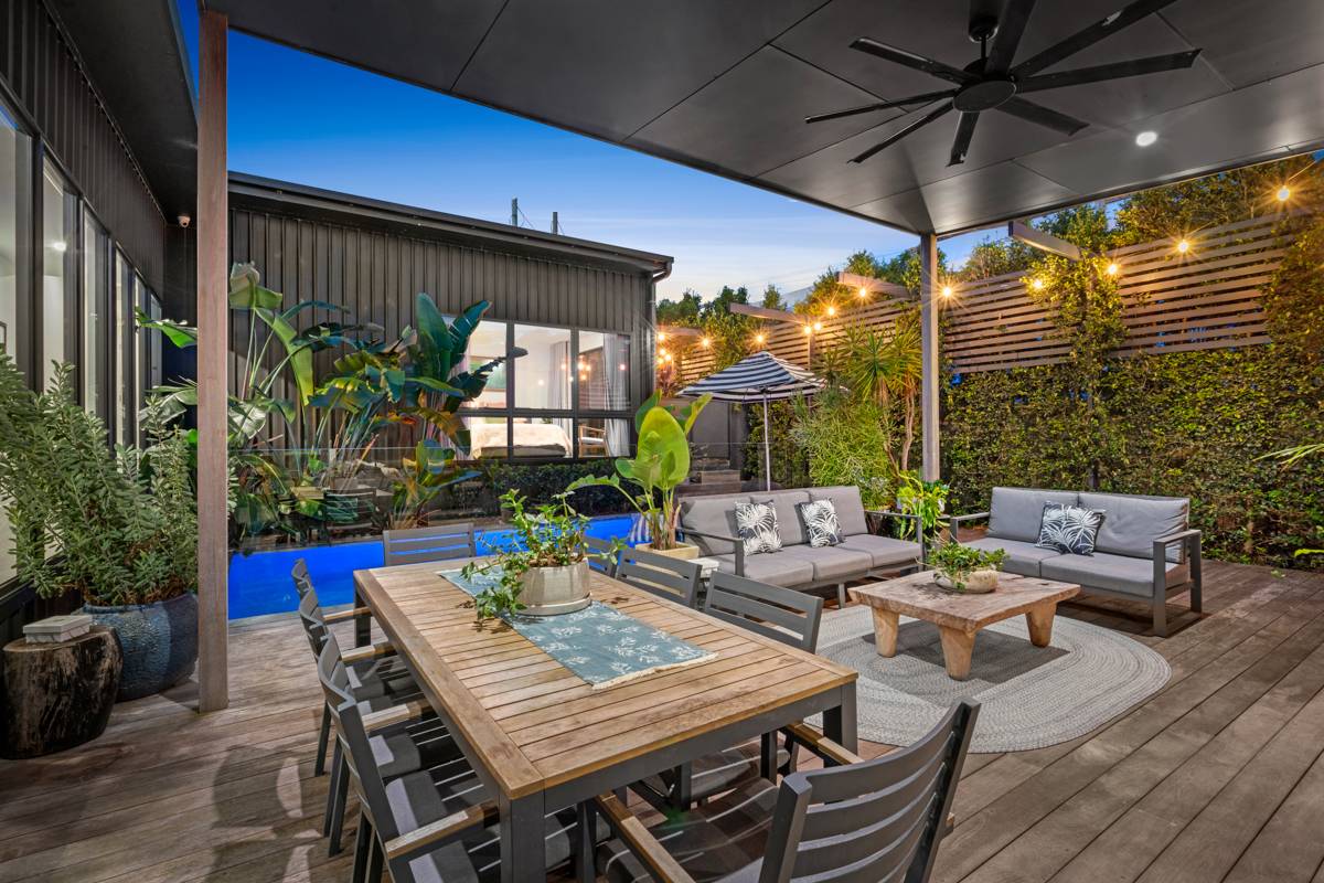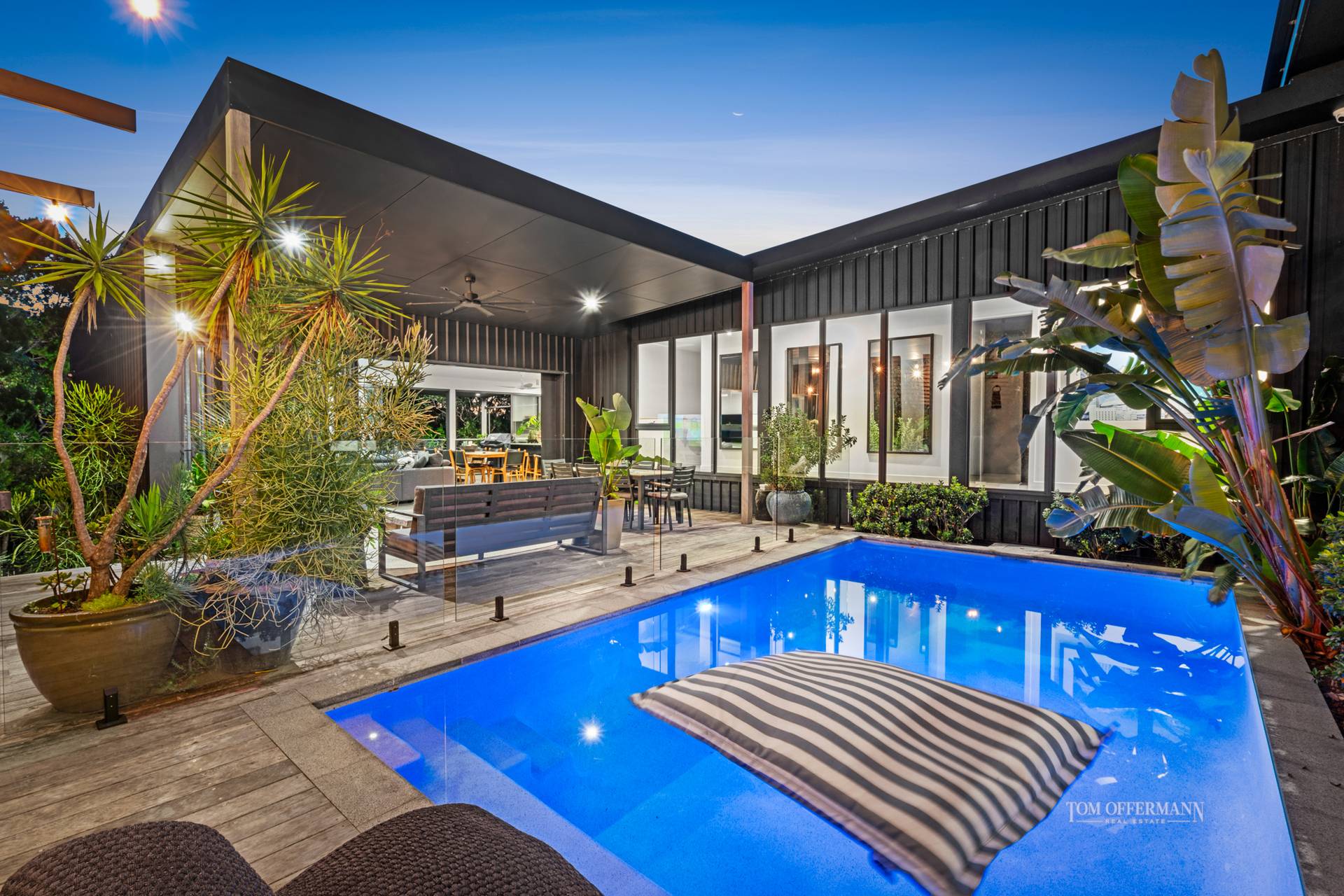 This stunning contemporary home seamlessly blends sophisticated design with family-friendly functionality, offering an unparalleled living experience. Featuring burnished concrete floors and an expansive open-plan layout, the home is flooded with natural light, creating a space that feels both contemporary and inviting.