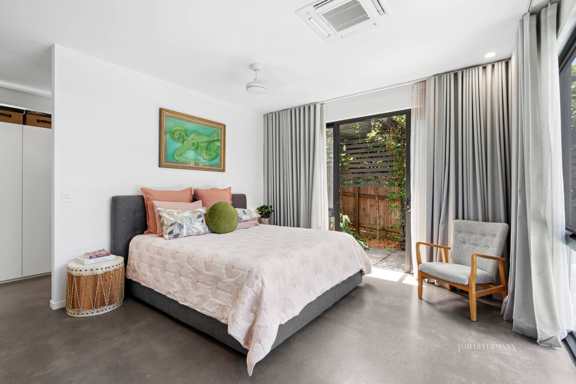 From the moment you arrive, the striking façade and low-maintenance native gardens set the tone for what's inside. Step through the door to discover concrete floors, soaring ceilings, light-filled spaces, and premium finishes that make this home a true standout.