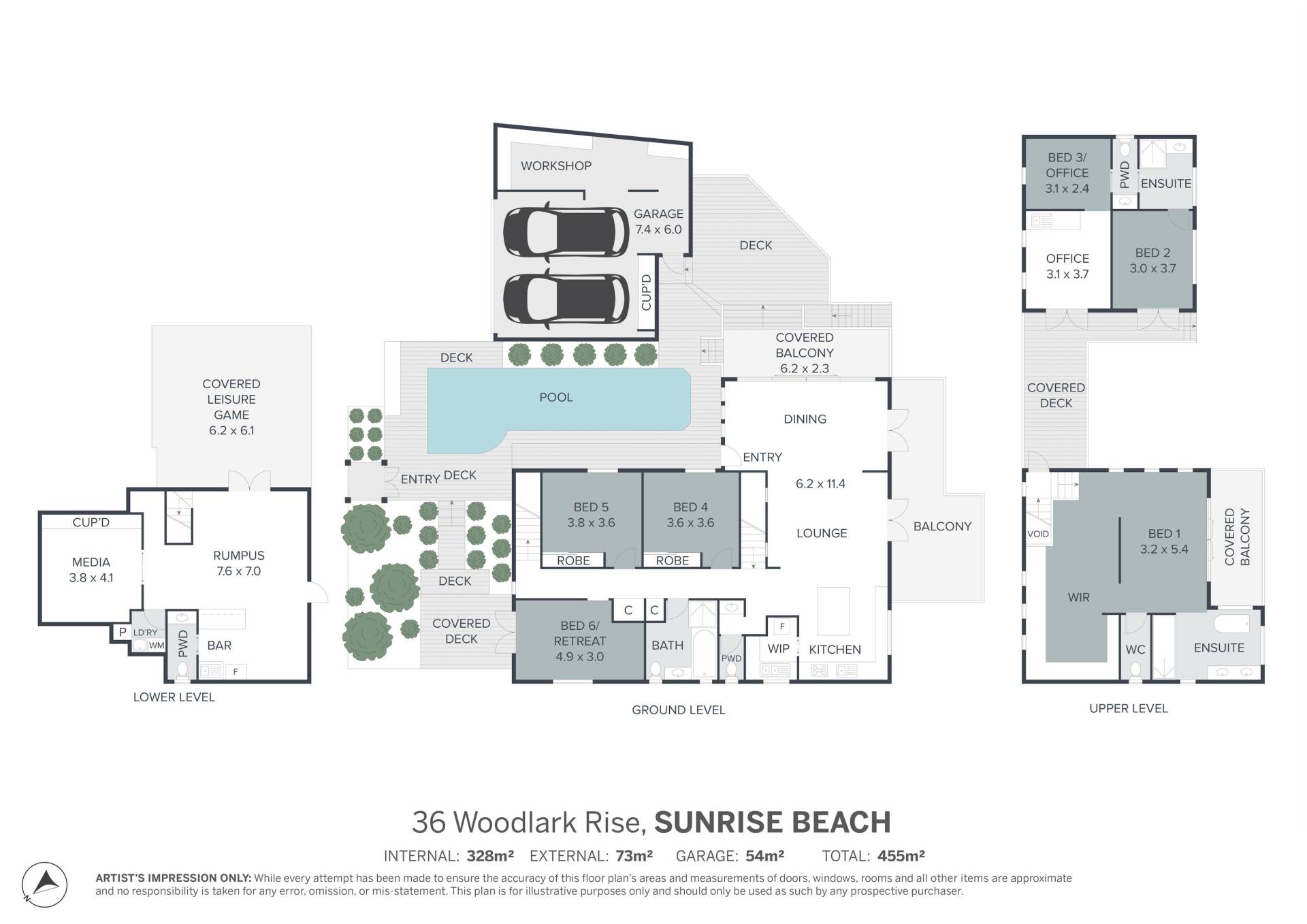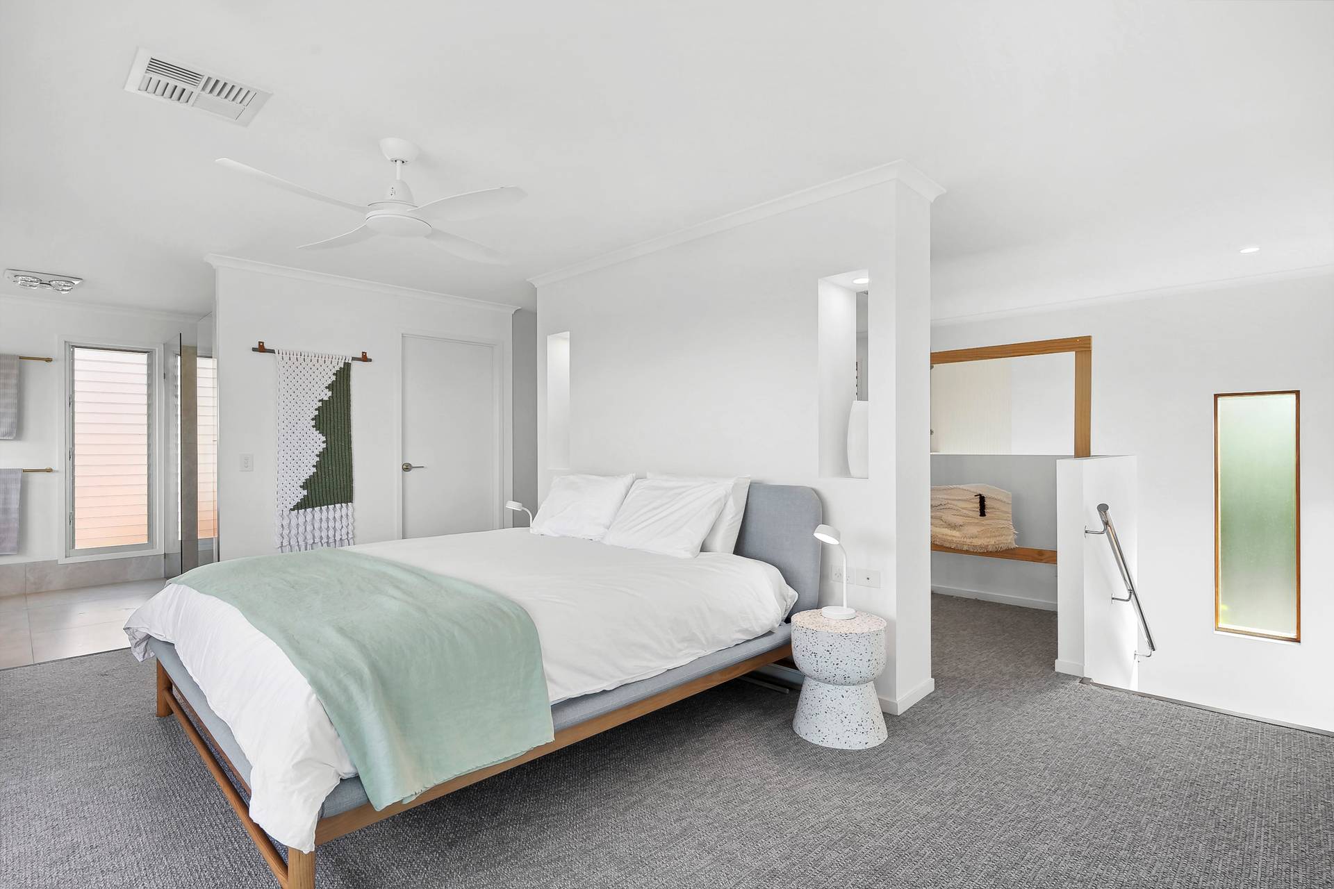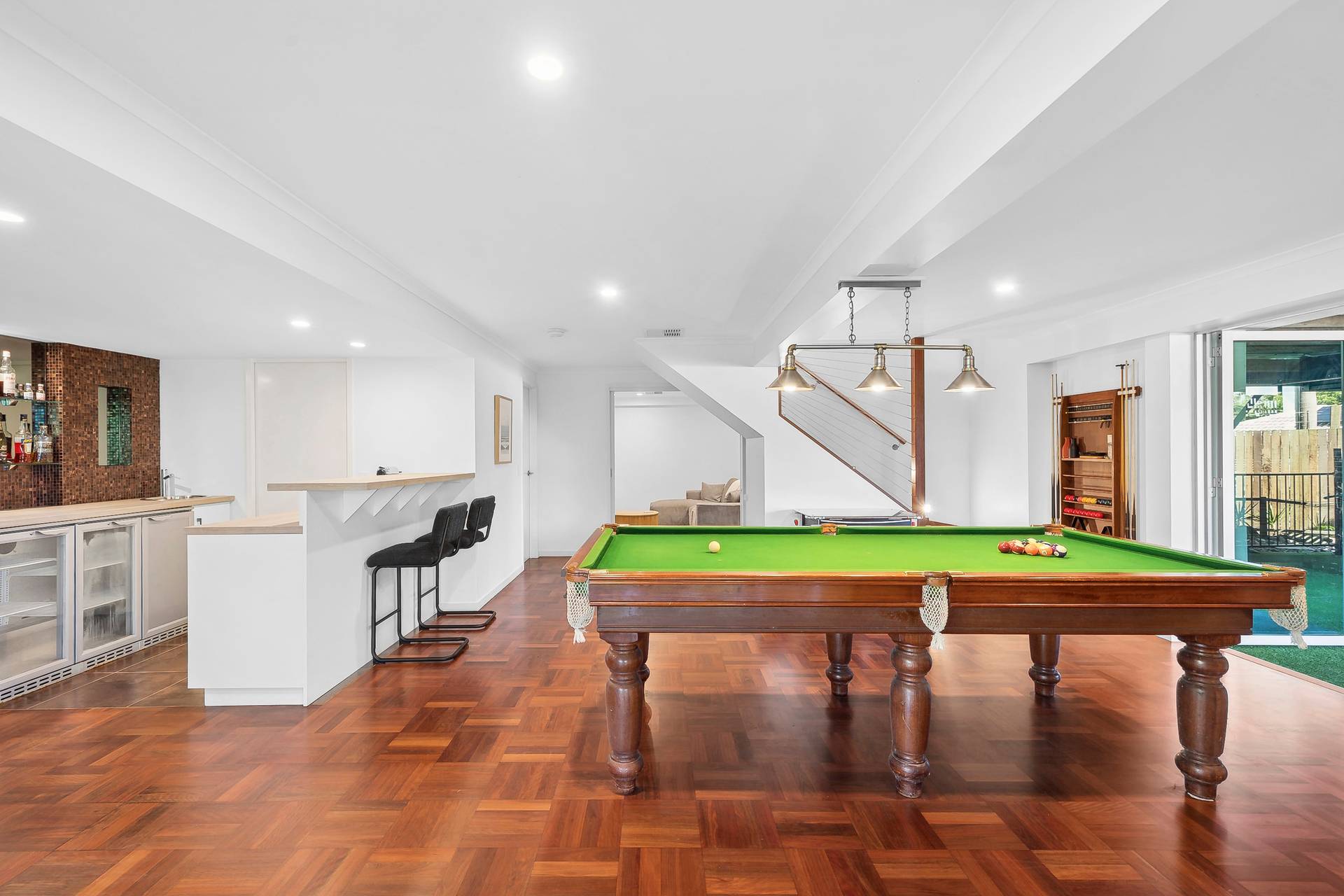 To complete the full family list of requirements, there is a games room, bar, and purpose-built cinema room on the ground floor, all flowing to an outdoor kids play area with a cubby and play equipment. Even the garage is enlarged with separate workshop/storage space for bikes, surfboards, and more. This home is the property that will end your search for the true blend of family function with coastal-inspired luxury.