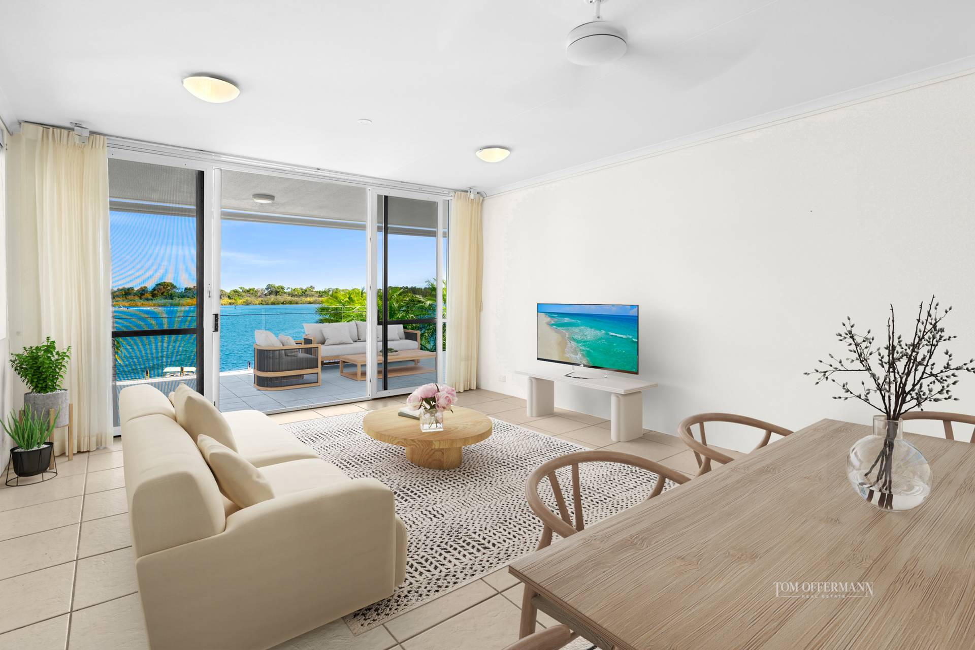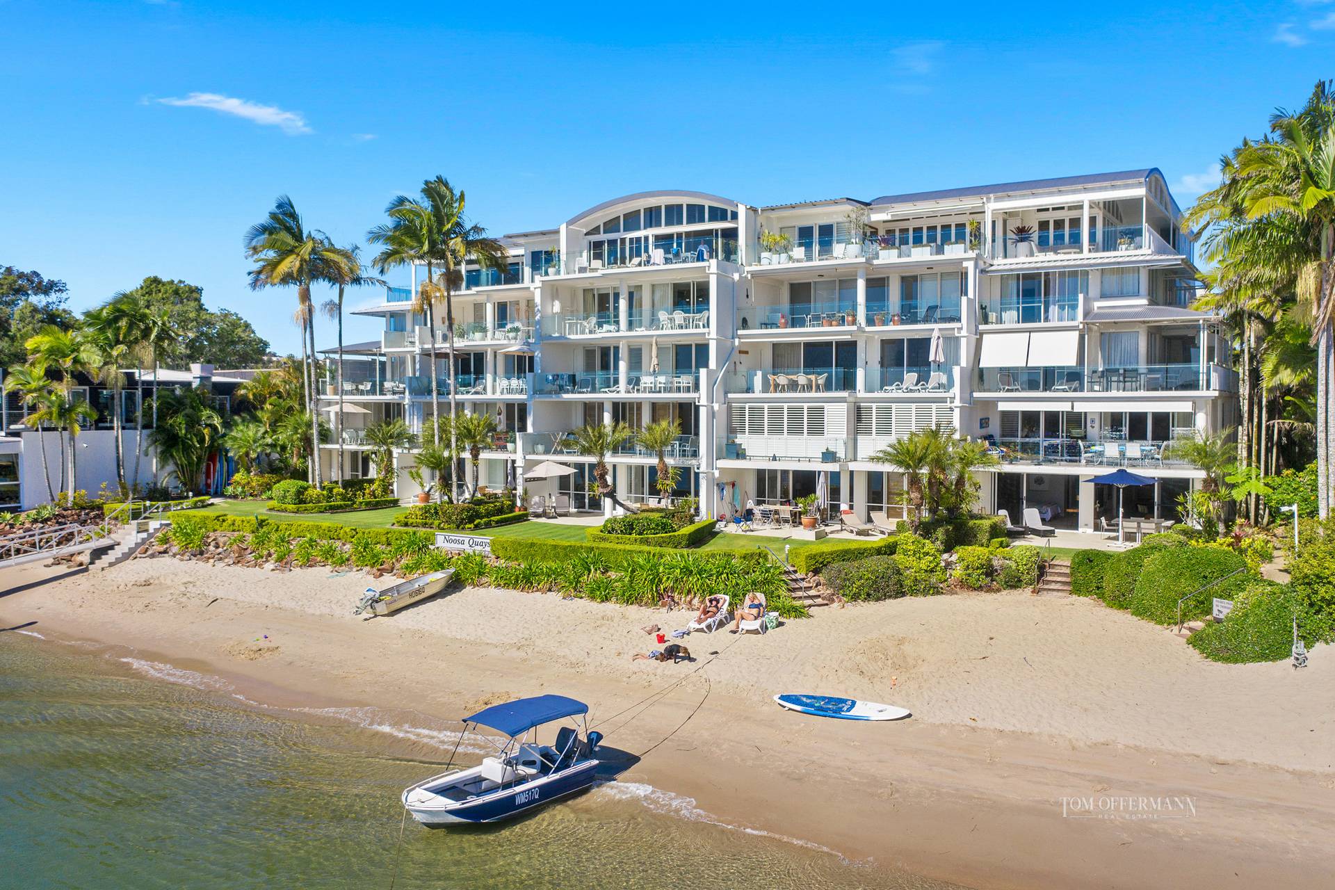 Imagine postcard perfect panoramas of the Noosa River daily from this spacious, Northern orientated apartment in the prestigious waterfront complex 'Noosa Quays'. Presenting an ideal blank canvas in a prime position awaiting a cosmetic update from its soon to be new owners. Offering an unmatched lifestyle opportunity in the heart of Noosa Heads with generous single level living and elevator access, whilst being walking distance from boutique stores, culinary delights, the Noosa Ferry and iconic Hastings Street.