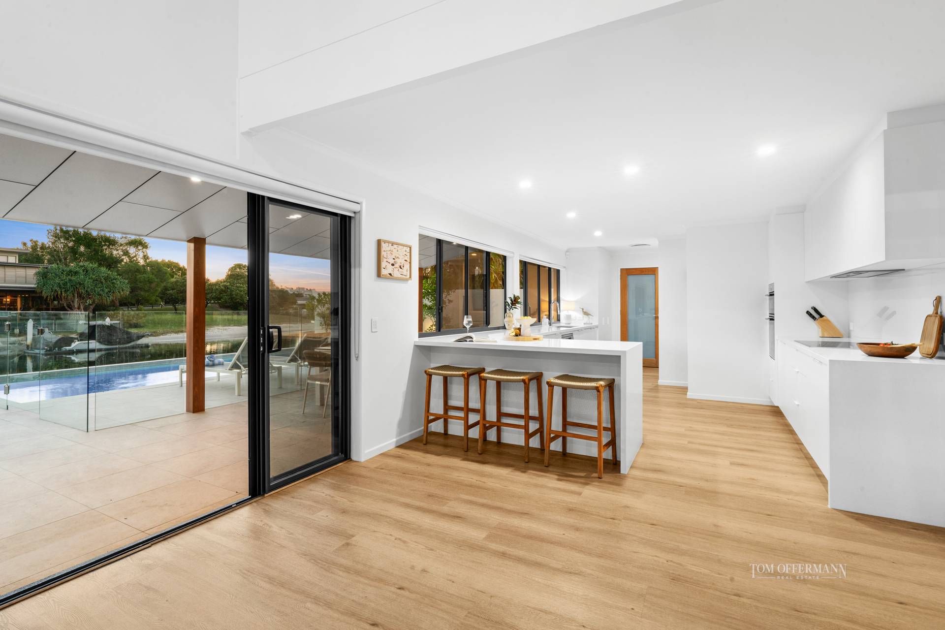 Think multiple entertaining, lounging and leisure options for all seasons with a kitchen to complement. It's galley style with a semi-island breakfast bar, white stone-topped cabinetry, glass splashback and pantry. The very latest appliances from Bosch including an induction cooktop, will appeal to the discerning cook, who will undoubtedly be inspired by the wide water views.