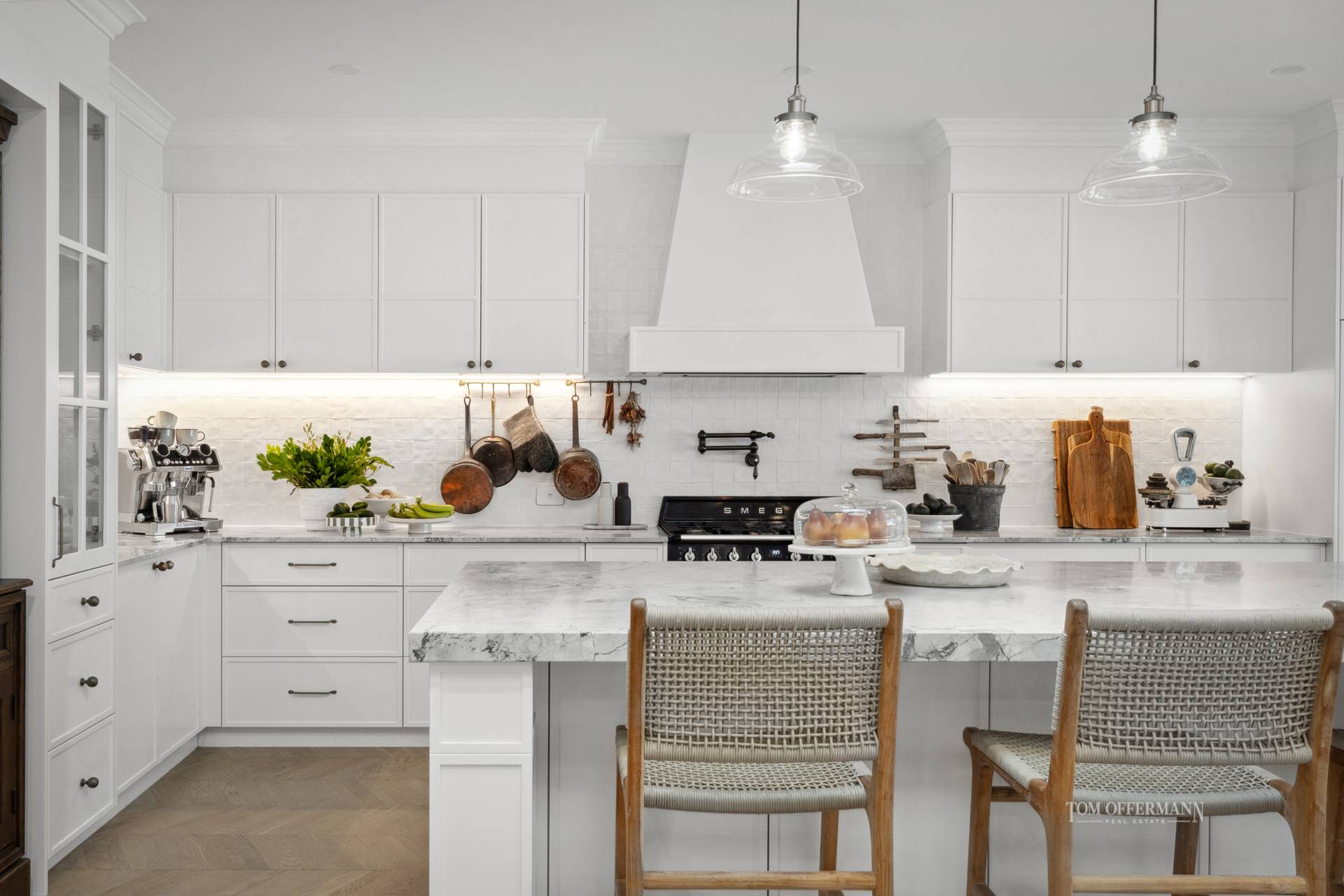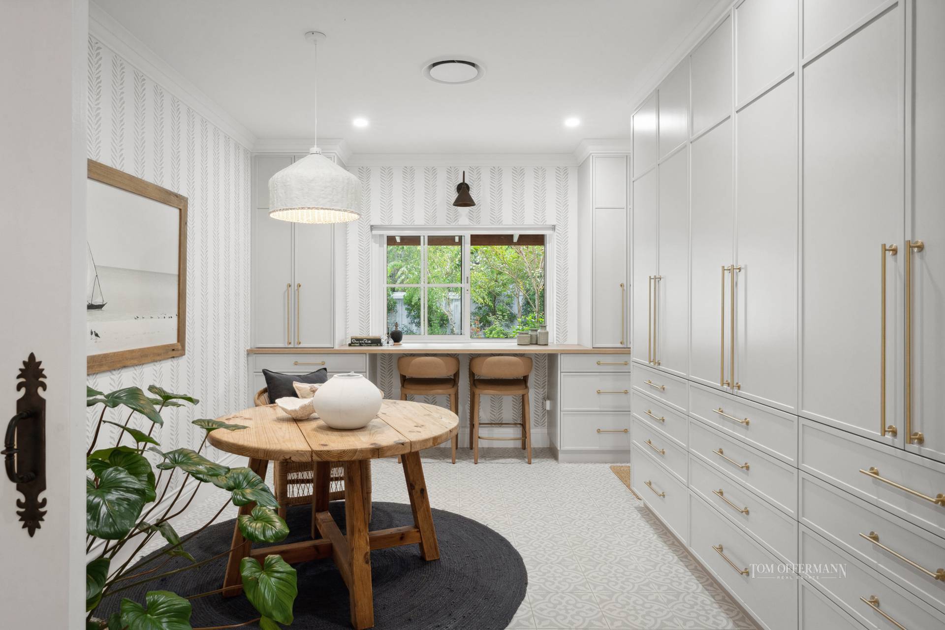When it comes to tantalising taste buds, be spoilt for choice. The custom shaker-inspired kitchen with super white natural Brazilian stone-topped cabinetry including long island breakfast bar, coffee station with a sink, bespoke oak armoire for the drinks, farmhouse sinks, solid brass tapware, and every conceivable high-end appliance, will suit any culinary super-star. Ditto in the butler's pantry and laundry room.