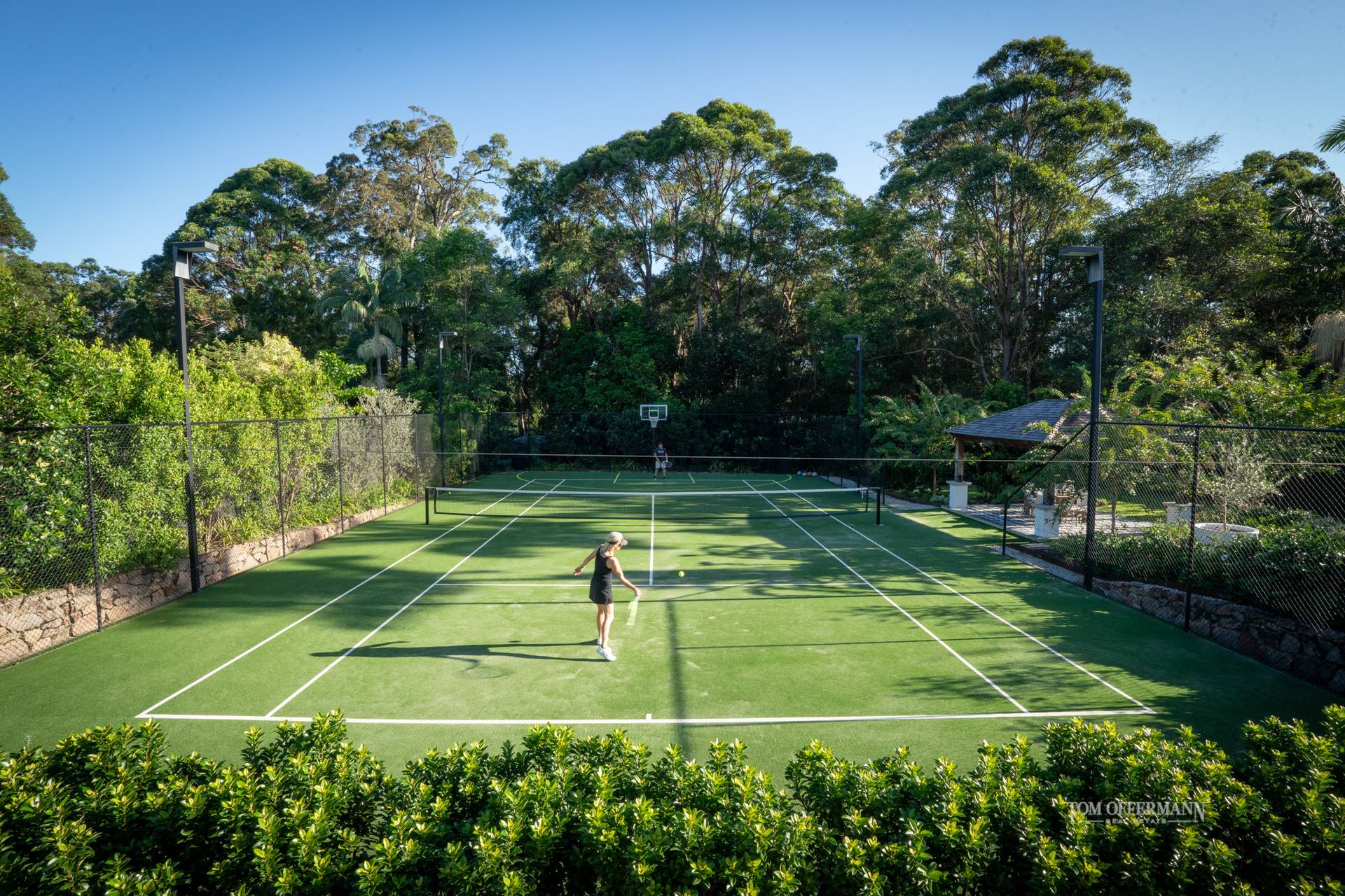Vying for the centre of attention is the full-size tennis court, also with a hoop and lined for basketball. Not your cup of tea? Watch the action from the cool comfort of the shingle-roofed pavilion.