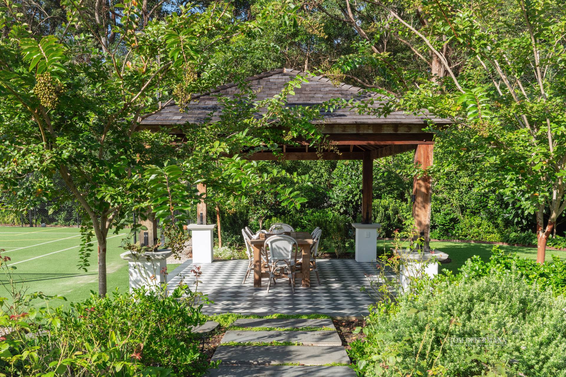 Stealing the limelight is white-bright Merryweather and the pergola entry into English-inspired formal gardens - shades of famous Paul Bangay's finessed style, and year-round floral displays of grey and white.
